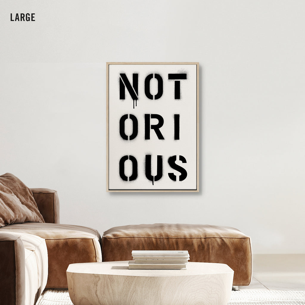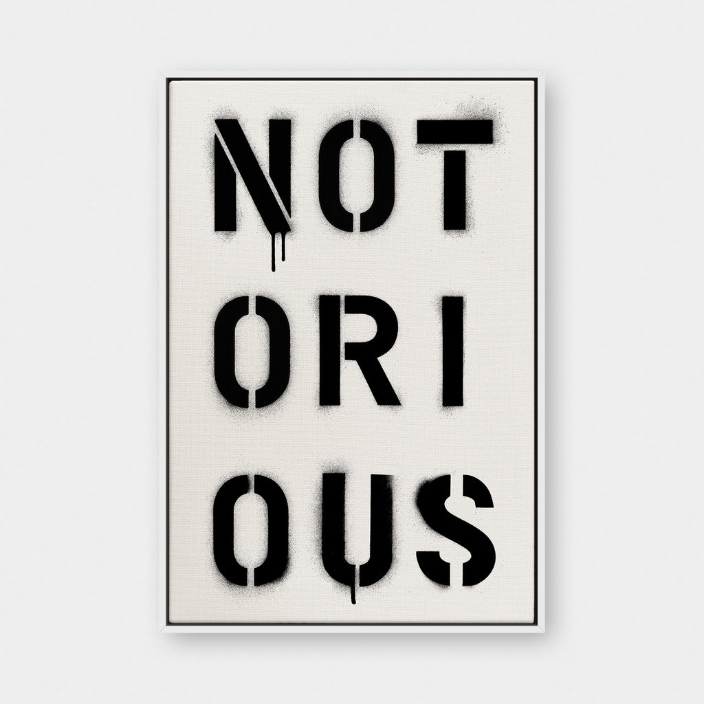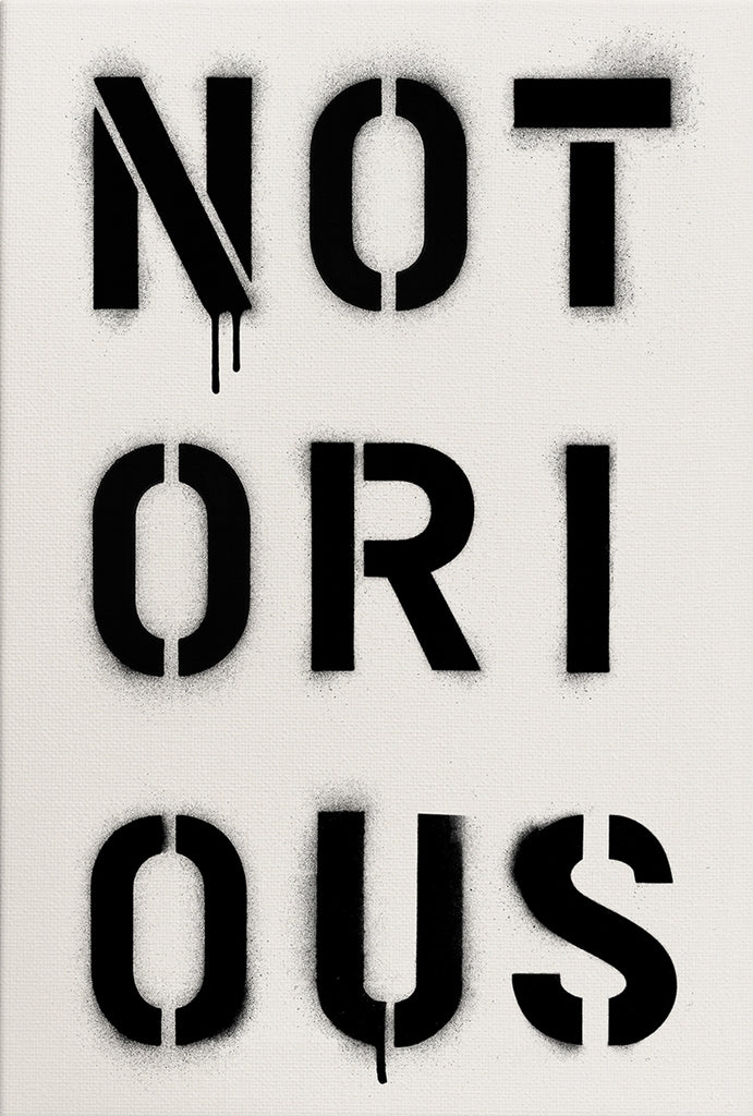 Infamous by design. NOTORIOUS captures the weight of reputation — stencil-sprayed, dripping, impossible to ignore. It’s a word that commands respect and leaves a mark.