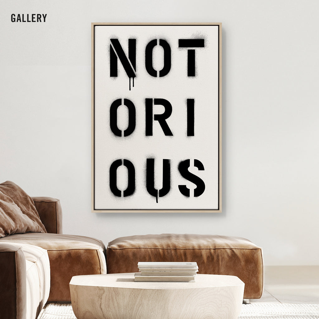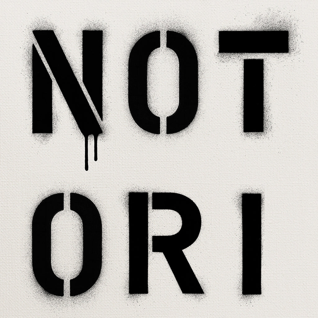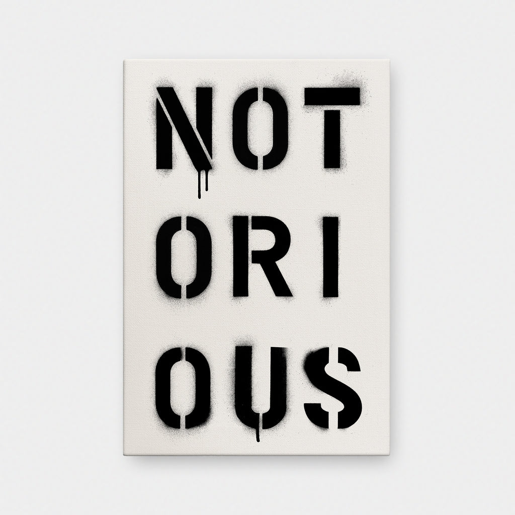 Infamous by design. NOTORIOUS captures the weight of reputation — stencil-sprayed, dripping, impossible to ignore. It’s a word that commands respect and leaves a mark.
