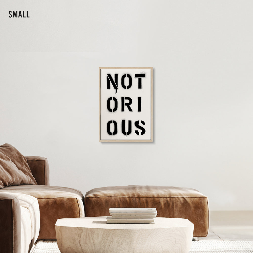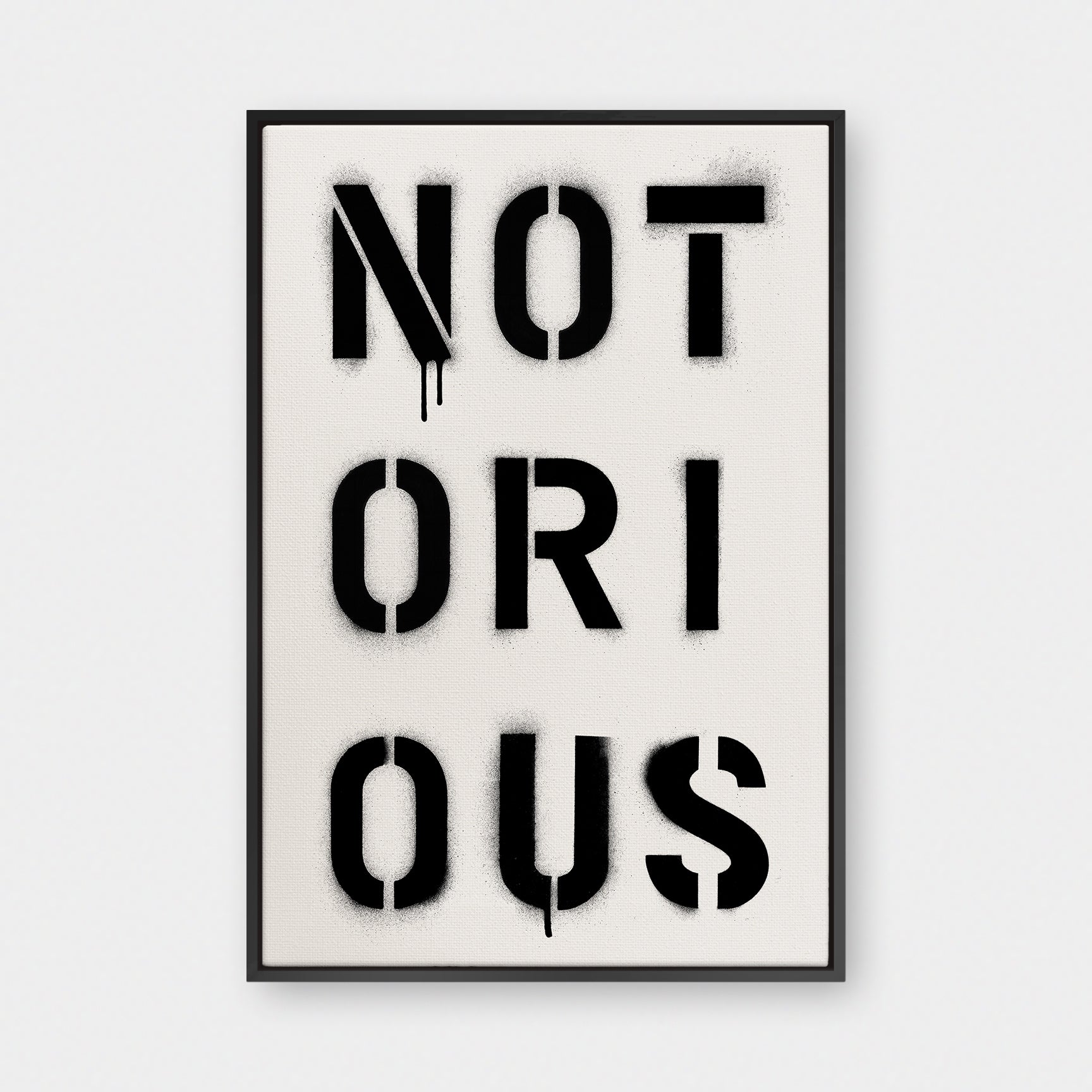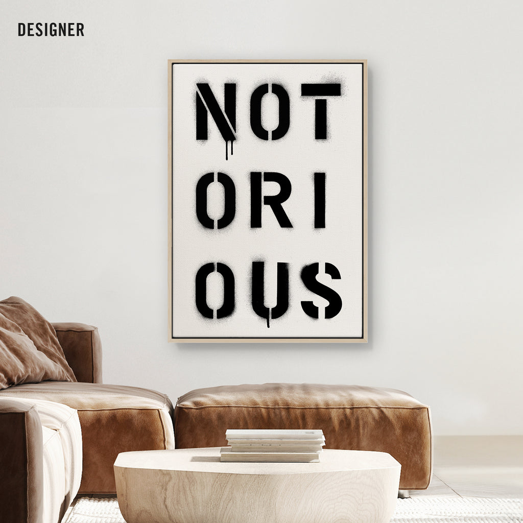 Infamous by design. NOTORIOUS captures the weight of reputation — stencil-sprayed, dripping, impossible to ignore. It’s a word that commands respect and leaves a mark.