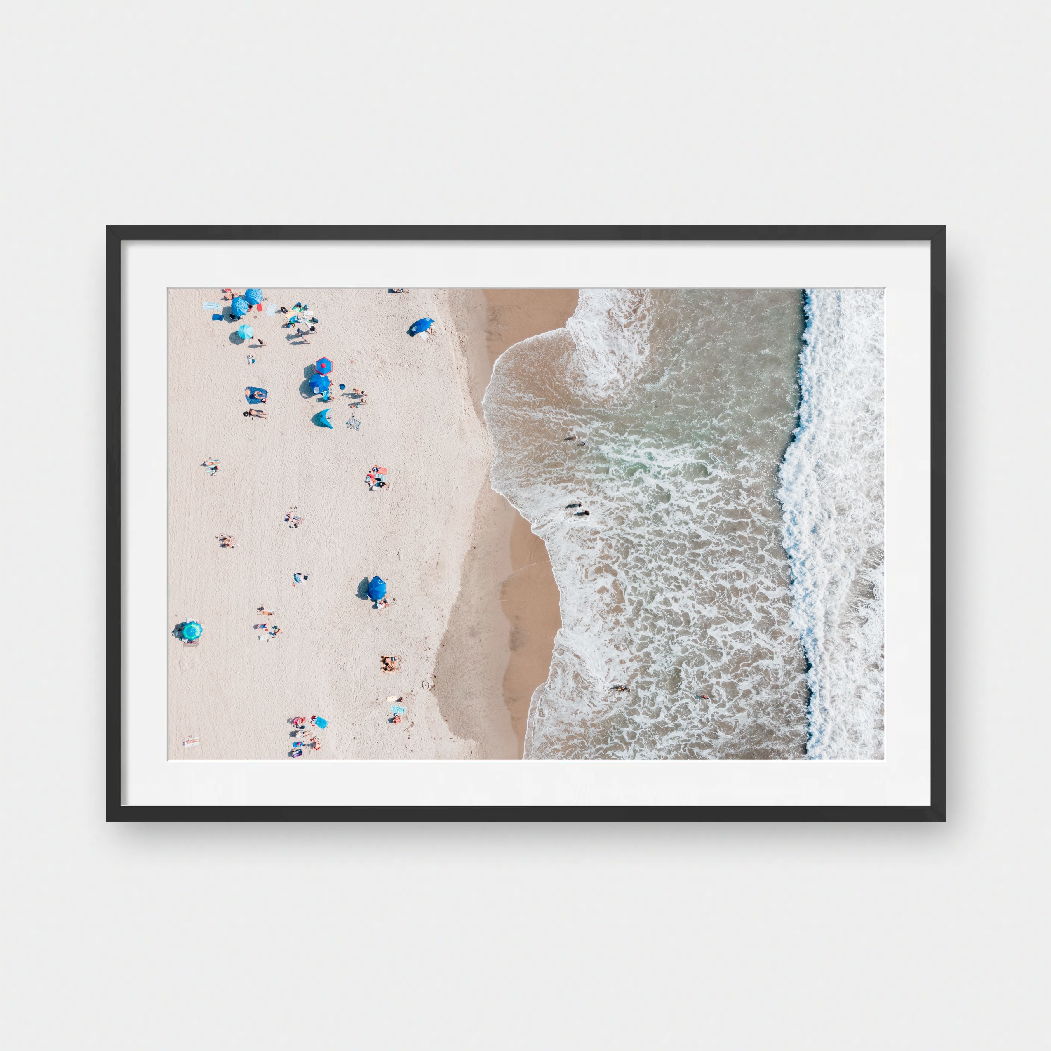 Framed Art Prints feature a contemporary high quality solid wood frame. Pieces come ready to hang with a wire hanger and paper backing. Framed with a white, 2" matte border.