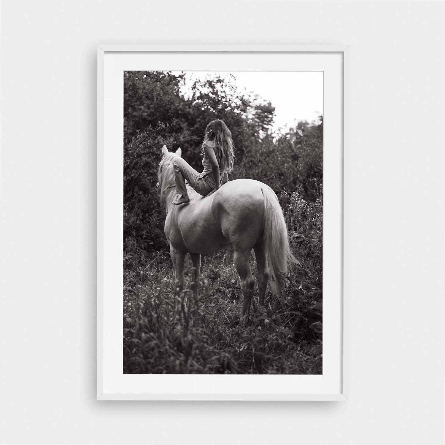 Framed Art Prints feature a contemporary high quality solid wood frame. Pieces come ready to hang with a wire hanger and paper backing. Framed with a white, 2" matte border.