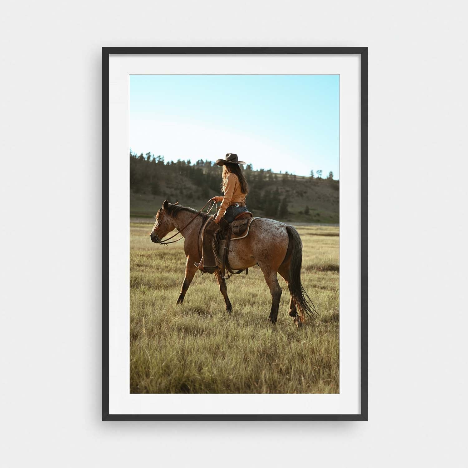 Framed Art Prints feature a contemporary high quality solid wood frame. Pieces come ready to hang with a wire hanger and paper backing. Framed with a white, 2" matte border.