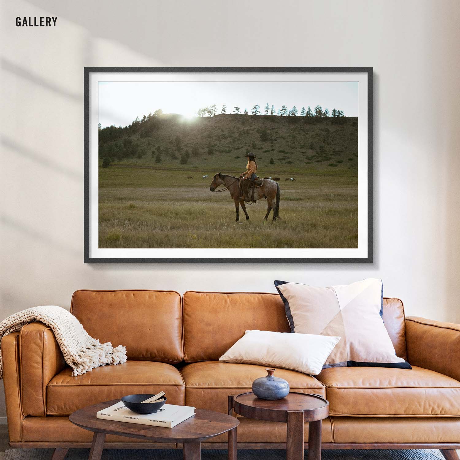 Framed Canvases feature a floating hardwood frame, hand stretched and stapled, with a scratch-resistant UV coating.
