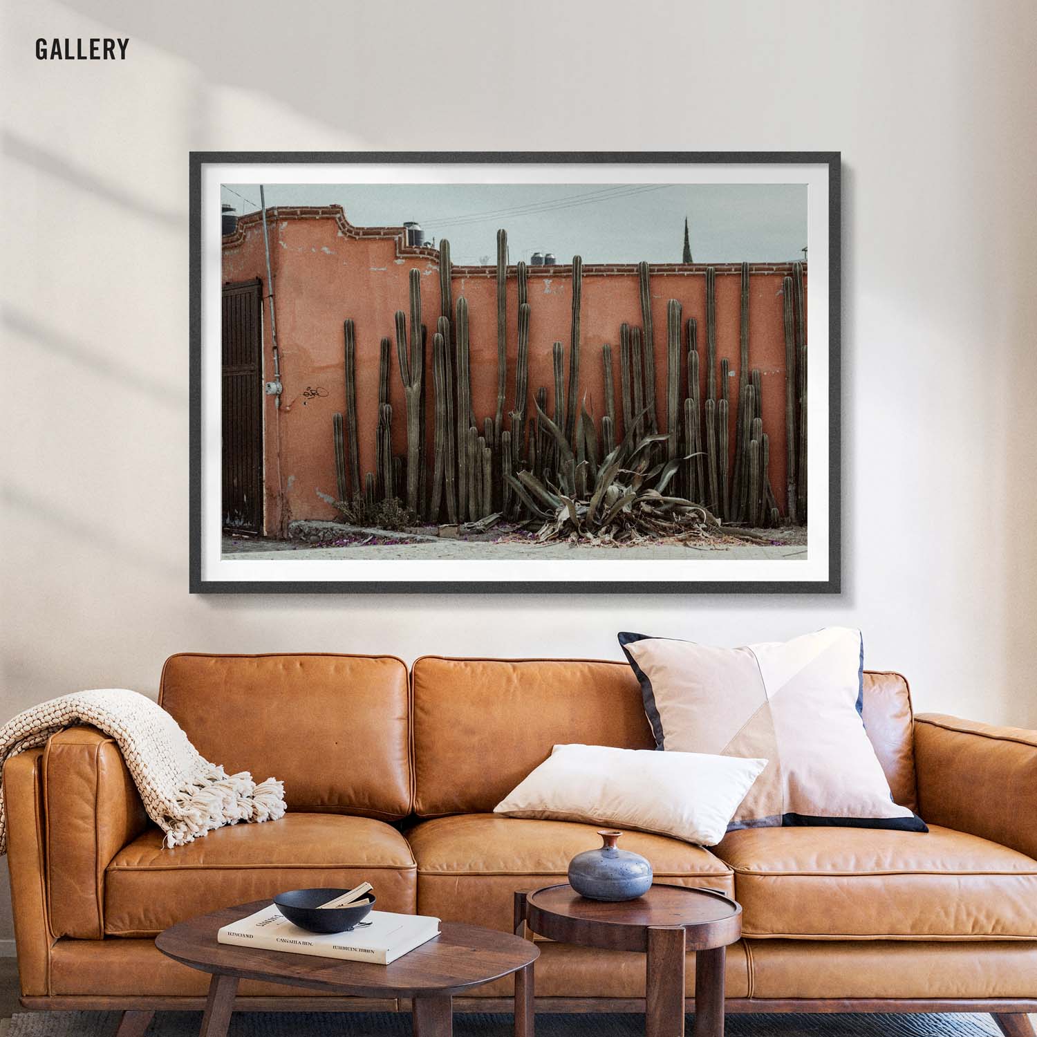Framed Art Prints feature a contemporary high quality solid wood frame. Pieces come ready to hang with a wire hanger and paper backing. Framed with a white, 2" matte border.