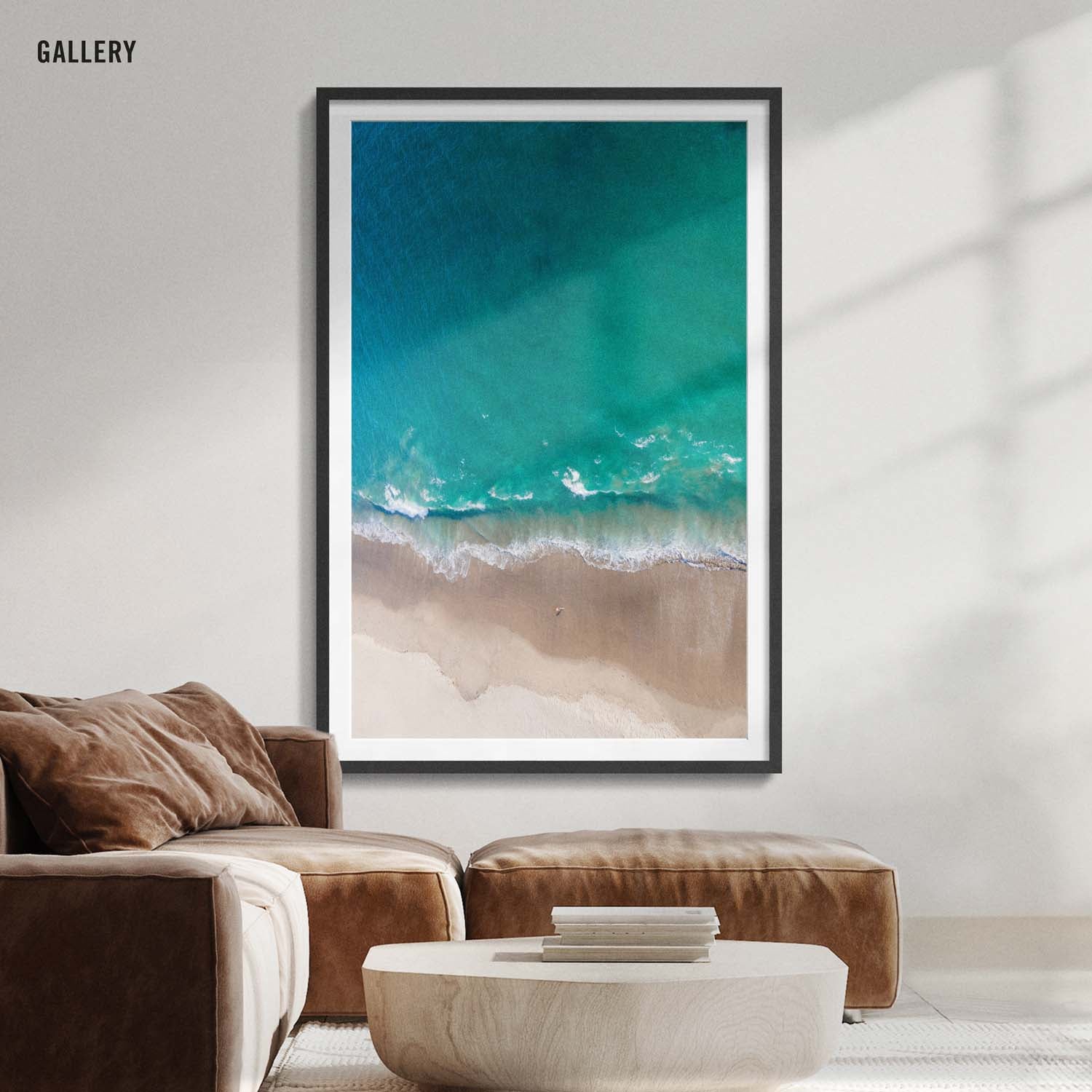 Framed Art Prints feature a contemporary high quality solid wood frame. Pieces come ready to hang with a wire hanger and paper backing. Framed with a white, 2" matte border.