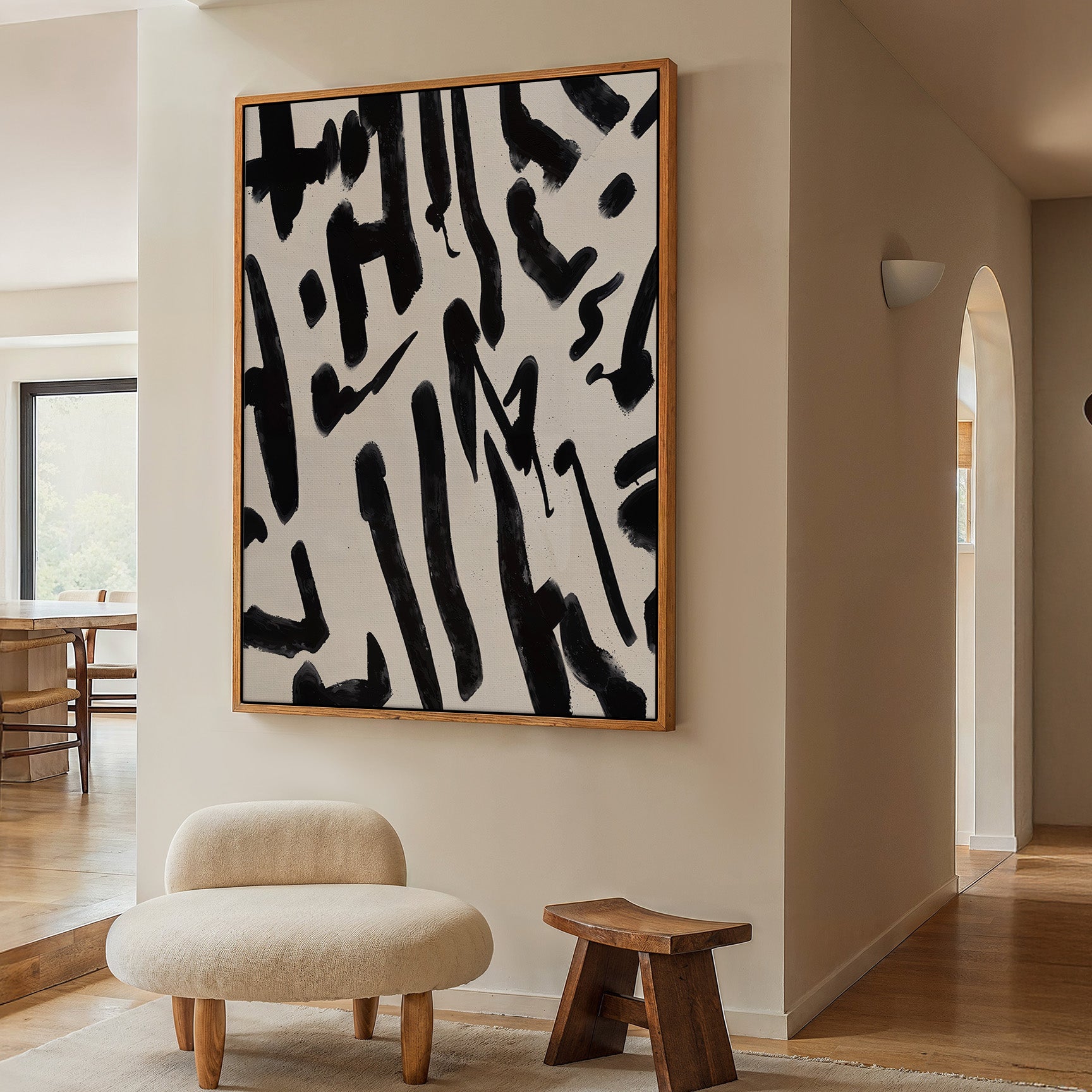 This piece leans into the power of simplicity. There’s no subject to explain, no story to spell out—only form, gesture, and balance. The brushwork carries weight and direction, allowing the viewer to feel the motion of the hand and the pause between marks.