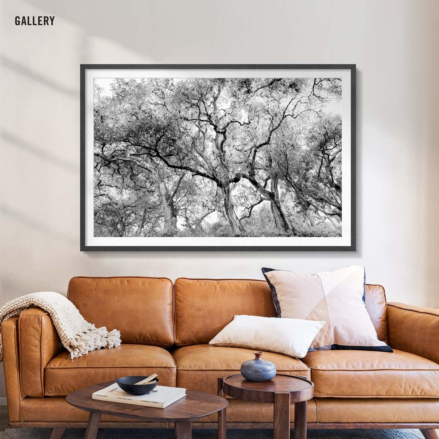 Framed Canvases feature a floating hardwood frame, hand stretched and stapled, with a scratch-resistant UV coating.