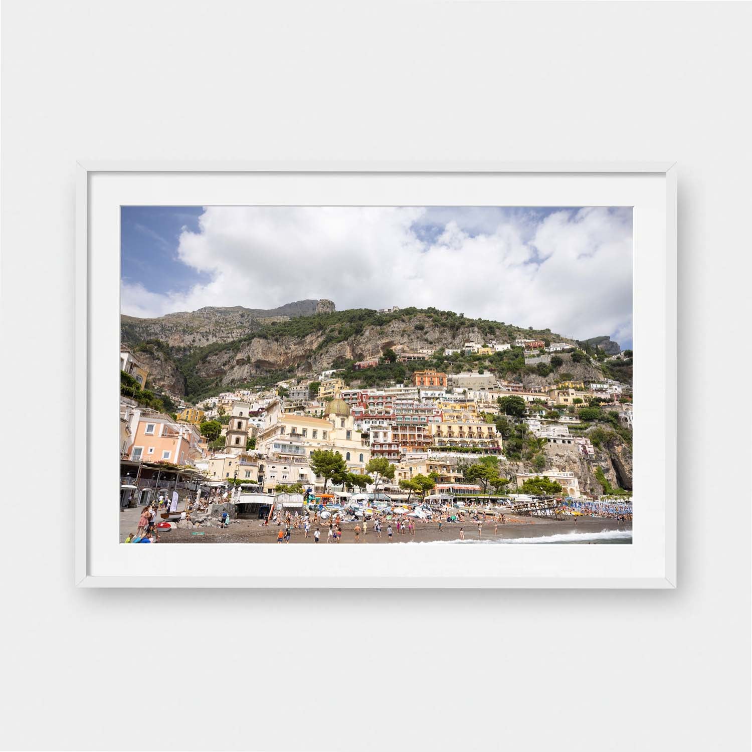 Framed Art Prints feature a contemporary high quality solid wood frame. Pieces come ready to hang with a wire hanger and paper backing. Framed with a white, 2" matte border.