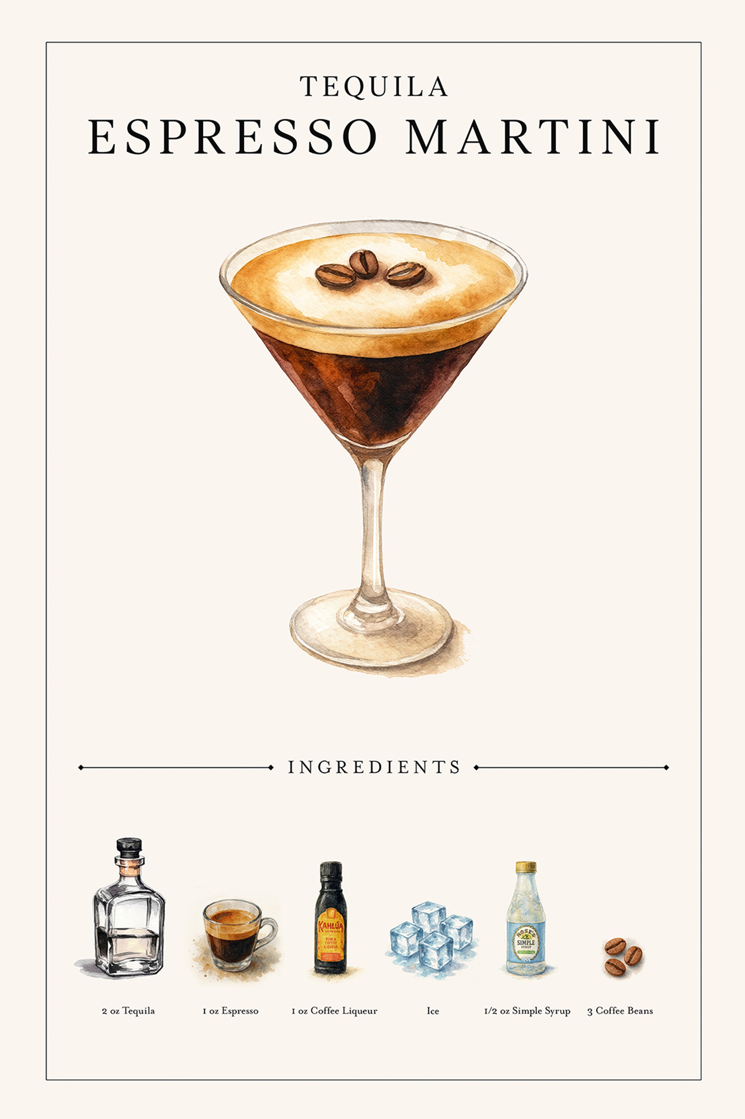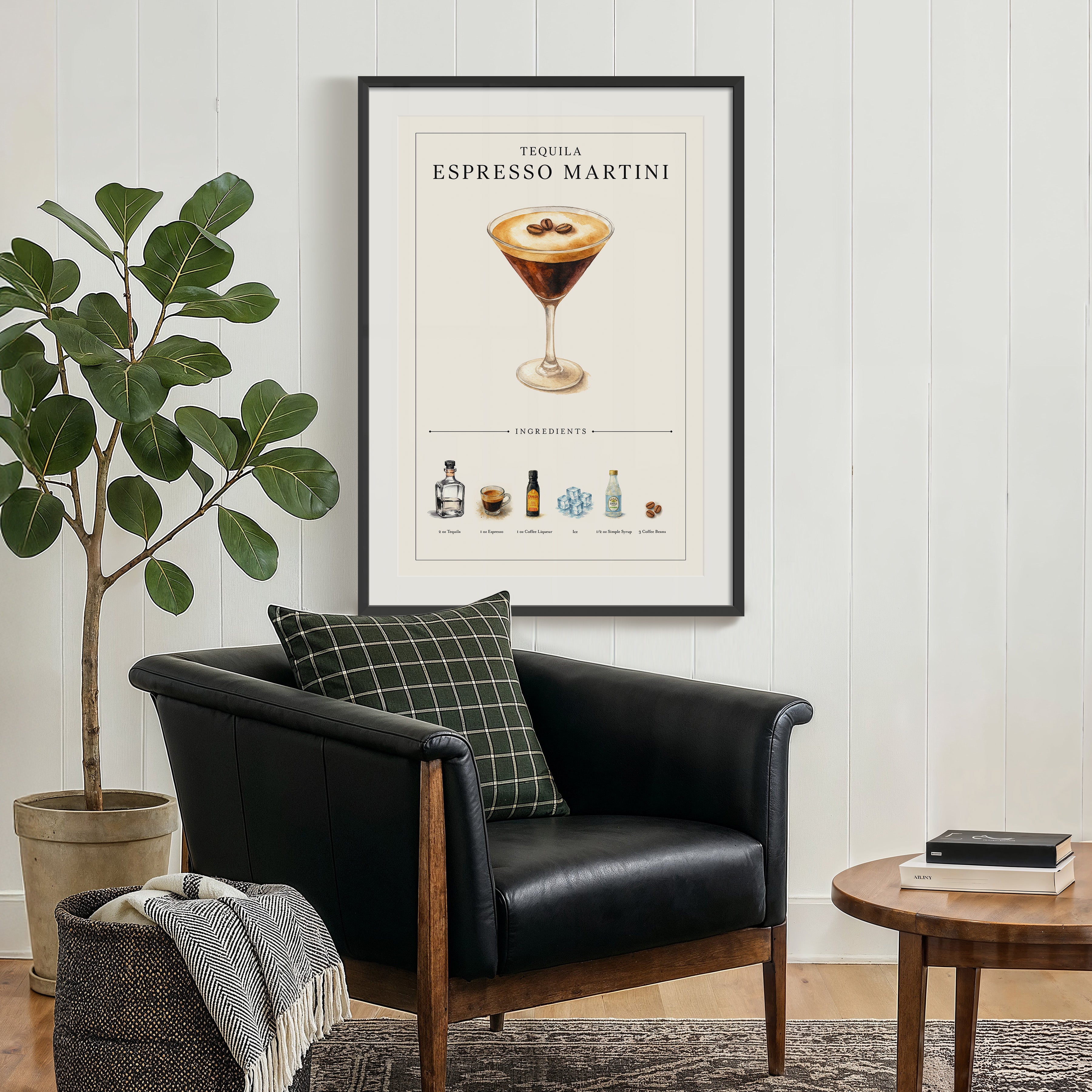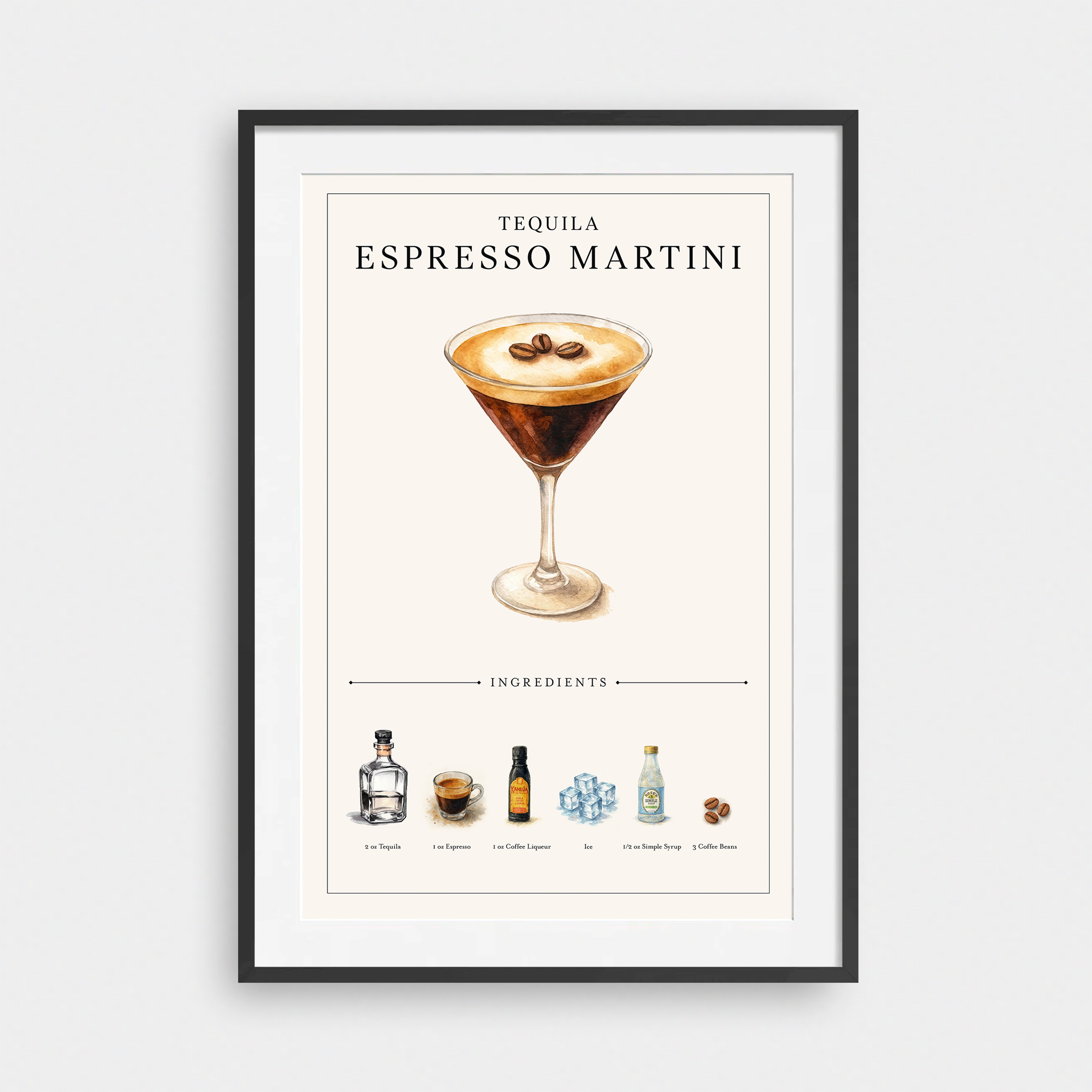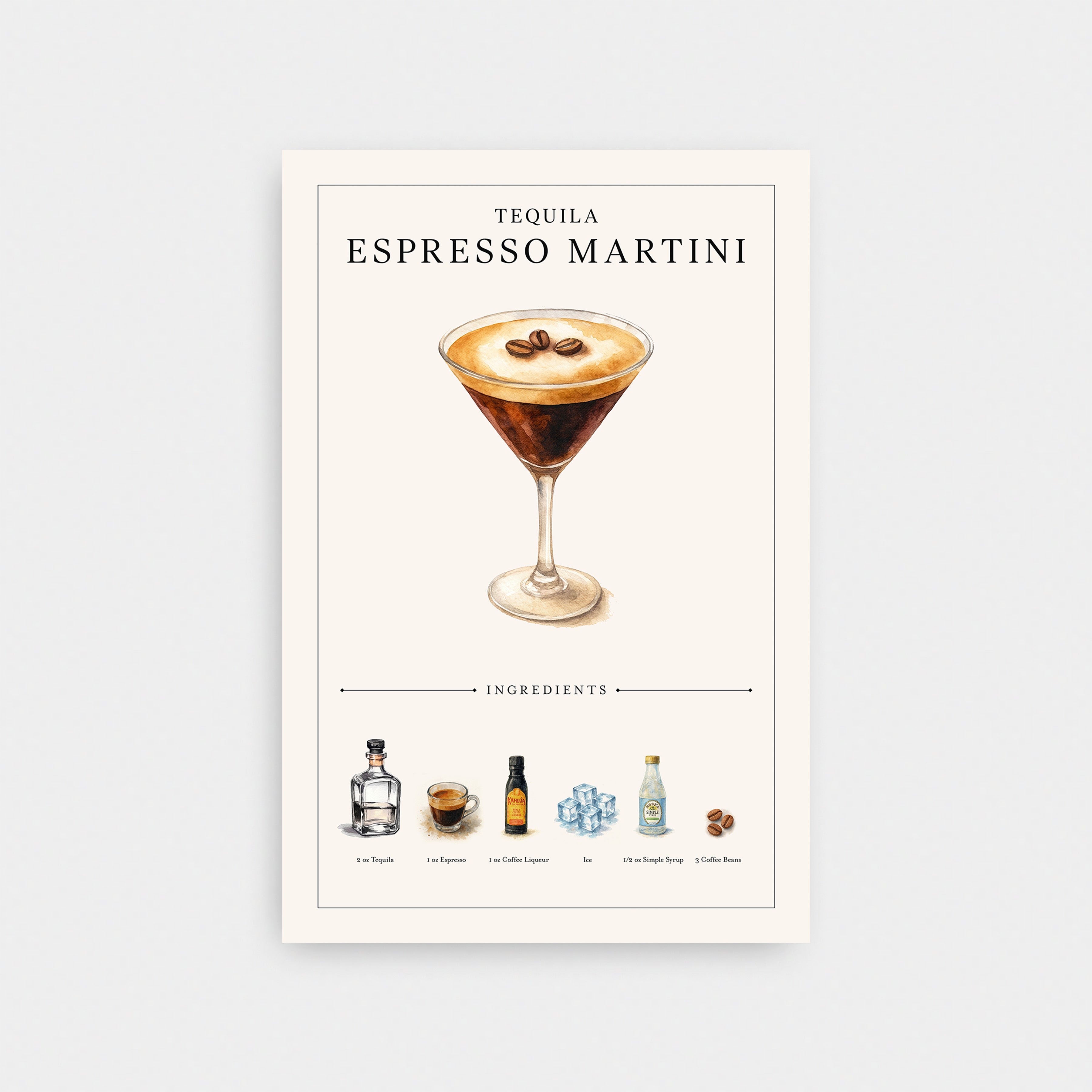 This piece blends classic cocktail culture with a refined, illustrative approach. Centered around the espresso martini, the artwork elevates a familiar drink into a timeless composition—balanced, elegant, and quietly indulgent.