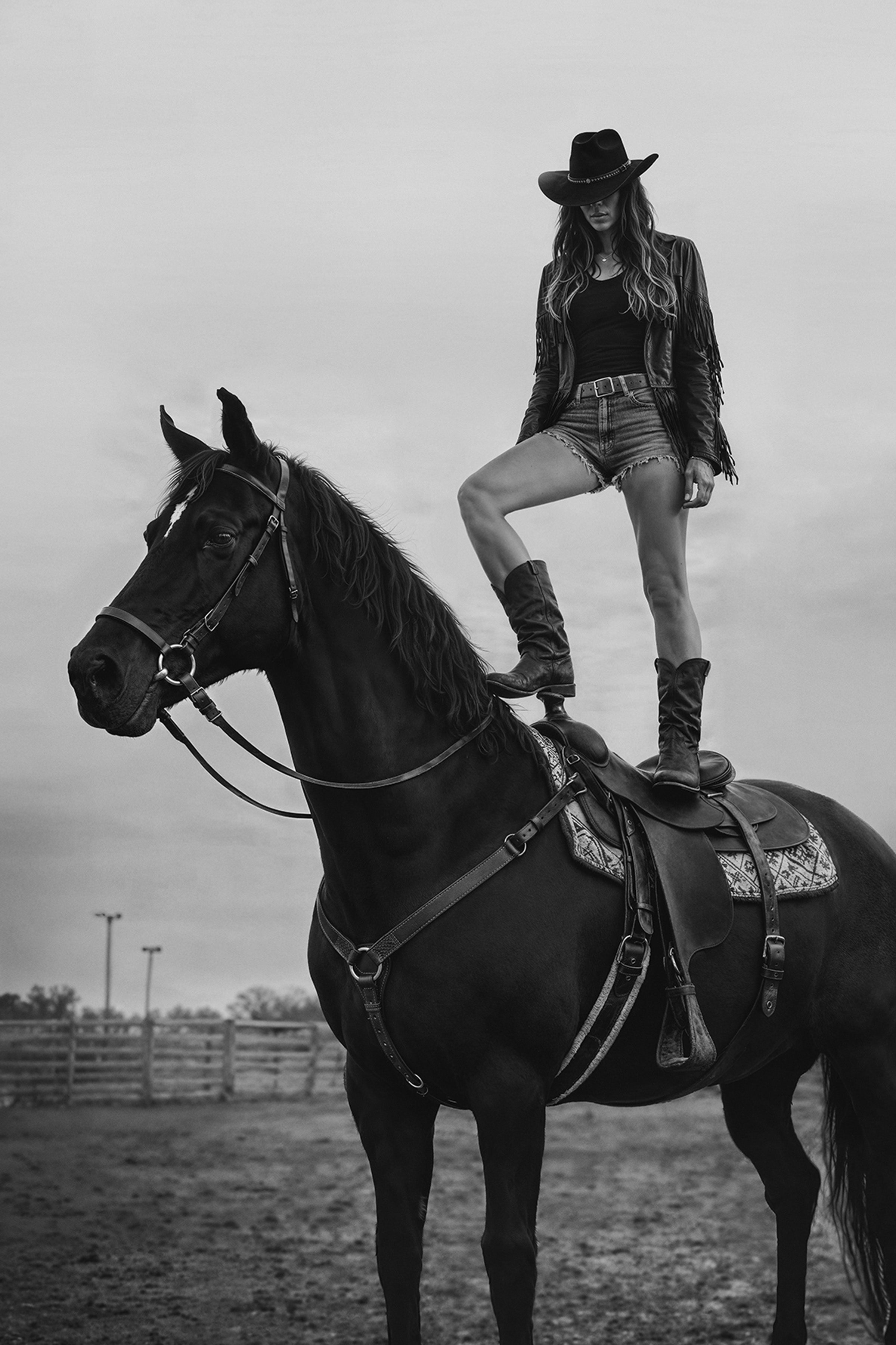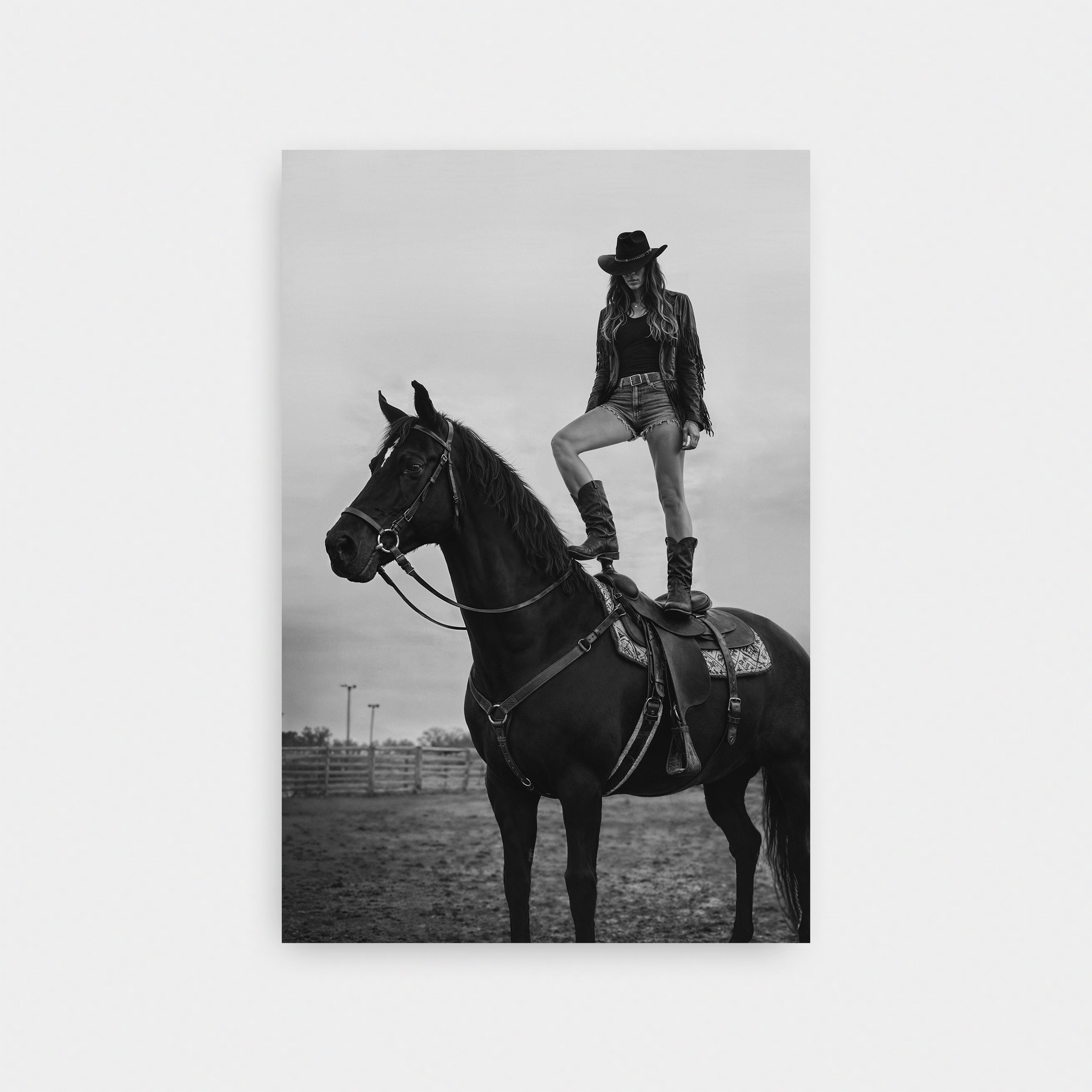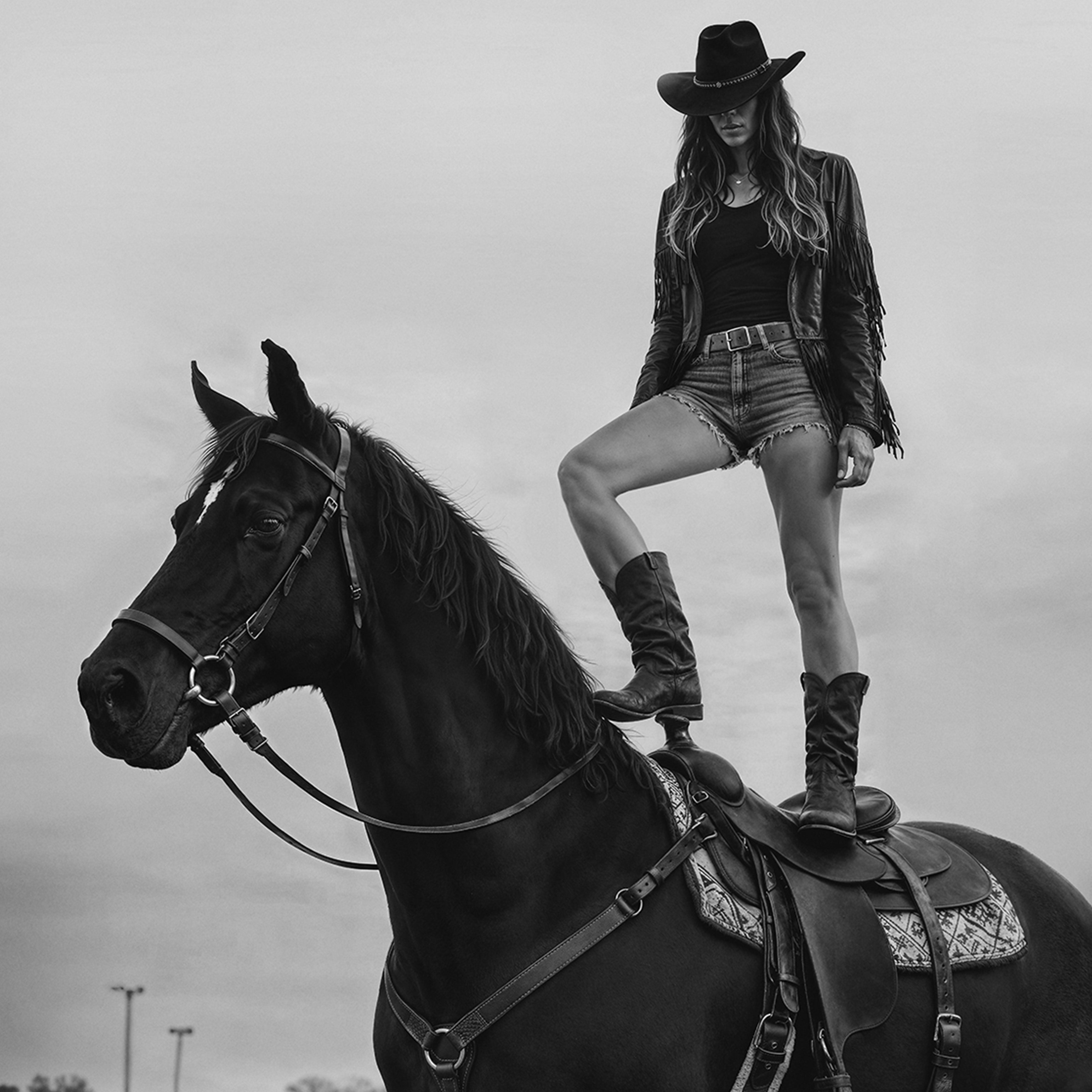 Legends say she emerged fully grown from the smoke of a burning saloon, cigarette already lit, rebellion burning brighter than any fire. Every town she passes through rewrites their rules because the old ones don't apply to someone who makes her own law with each breath. The silver conchos on her hat were forged from melted-down marshal's badges - trophies from men who thought they could tame her. She doesn't fight the system; she ignores it completely, creating her own reality where freedom is the only currency worth having. The smoke that curls from her lips, they say, carries whispered promises of revolution, and even the straightest-laced deputy finds himself questioning everything he believed in when she rides into town.