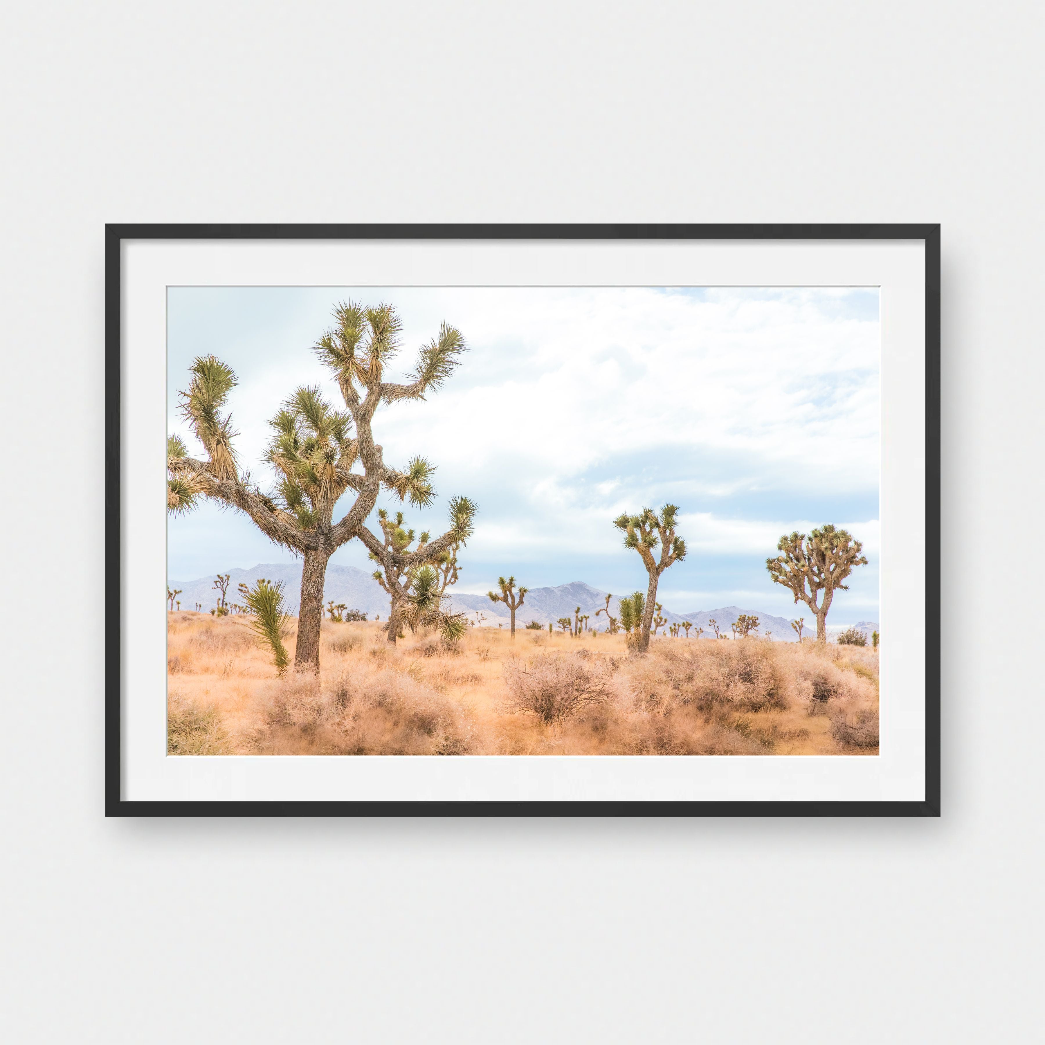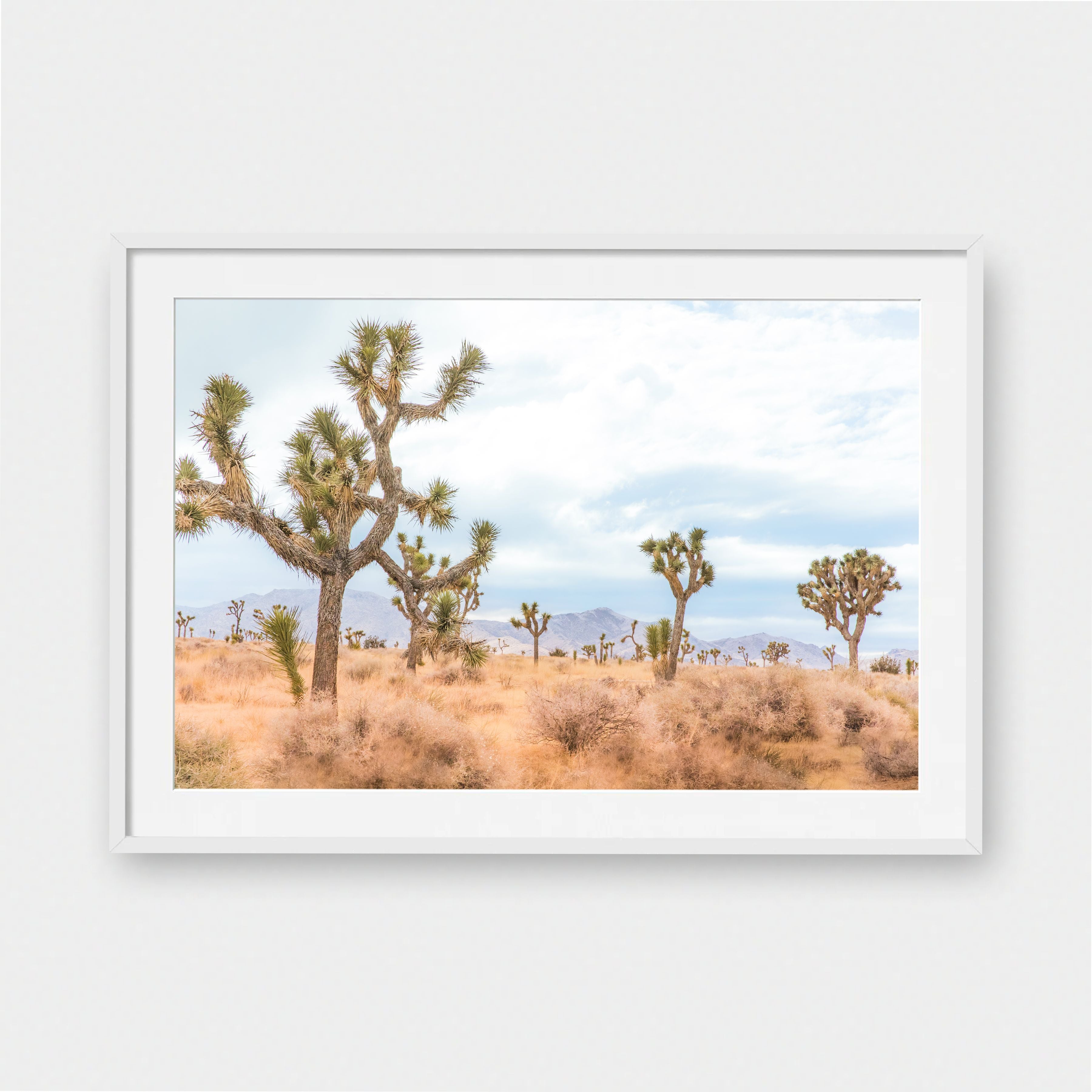 Framed Art Prints feature a contemporary high quality solid wood frame. Pieces come ready to hang with a wire hanger and paper backing. Framed with a white, 2" matte border.
