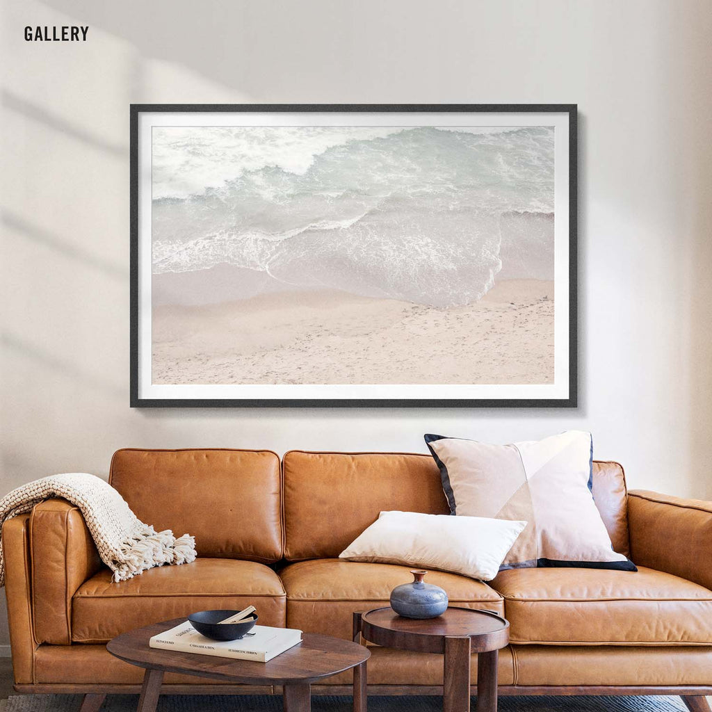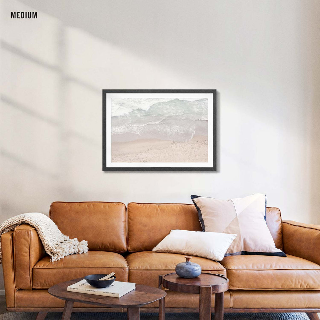 Framed Art Prints feature a contemporary high quality solid wood frame. Pieces come ready to hang with a wire hanger and paper backing. Framed with a white, 2" matte border.
