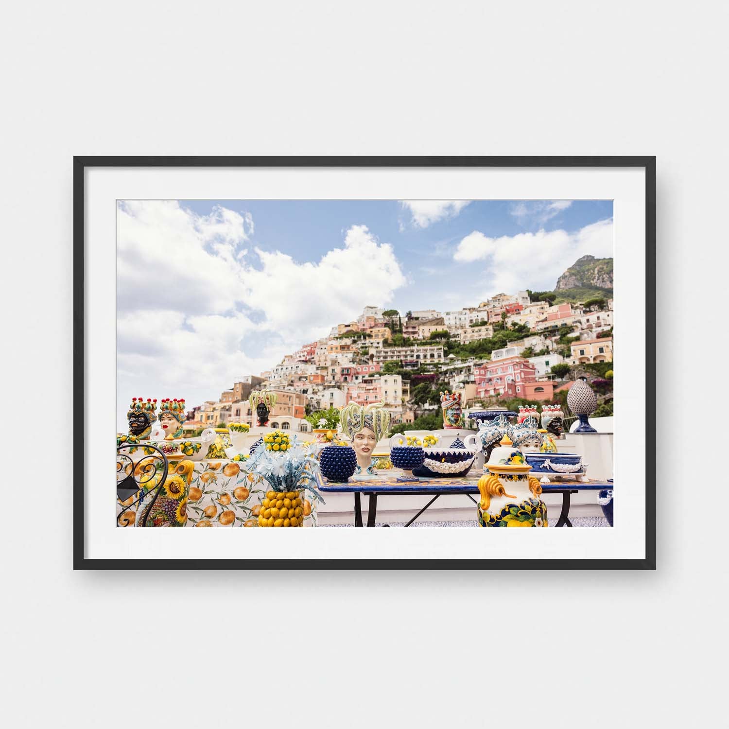 Framed Art Prints feature a contemporary high quality solid wood frame. Pieces come ready to hang with a wire hanger and paper backing. Framed with a white, 2" matte border.