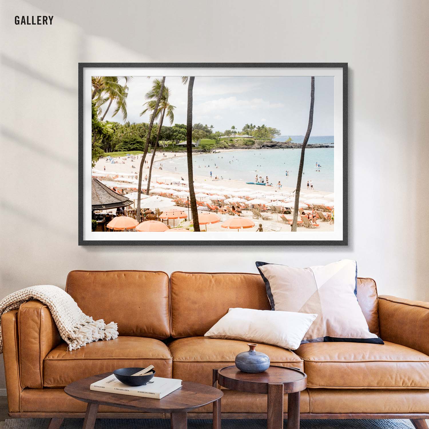 Framed Canvases feature a floating hardwood frame, hand stretched and stapled, with a scratch-resistant UV coating.