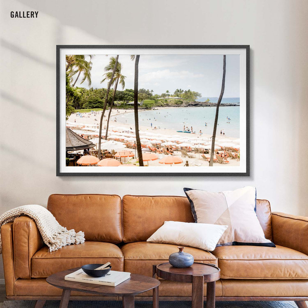 Framed Art Prints feature a contemporary high quality solid wood frame. Pieces come ready to hang with a wire hanger and paper backing. Framed with a white, 2" matte border.