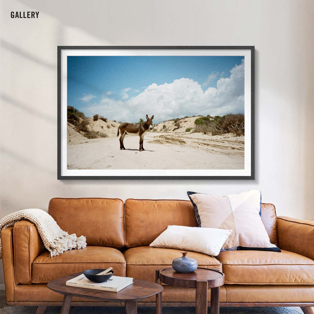 Framed Art Prints feature a contemporary high quality solid wood frame. Pieces come ready to hang with a wire hanger and paper backing. Framed with a white, 2" matte border.