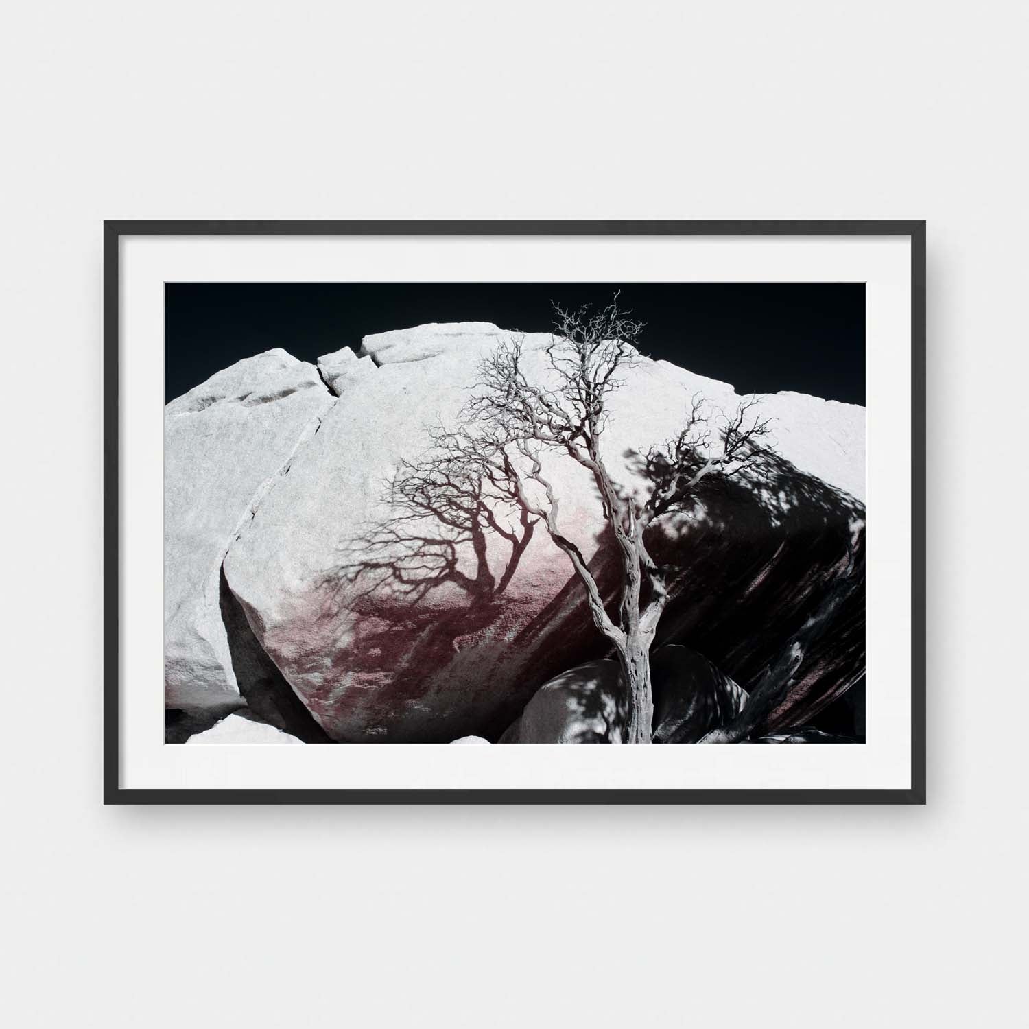 Framed Art Prints feature a contemporary high quality solid wood frame. Pieces come ready to hang with a wire hanger and paper backing. Framed with a white, 2" matte border.