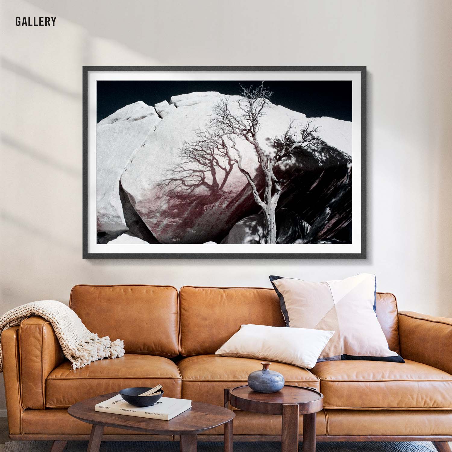 Framed Canvases feature a floating hardwood frame, hand stretched and stapled, with a scratch-resistant UV coating.