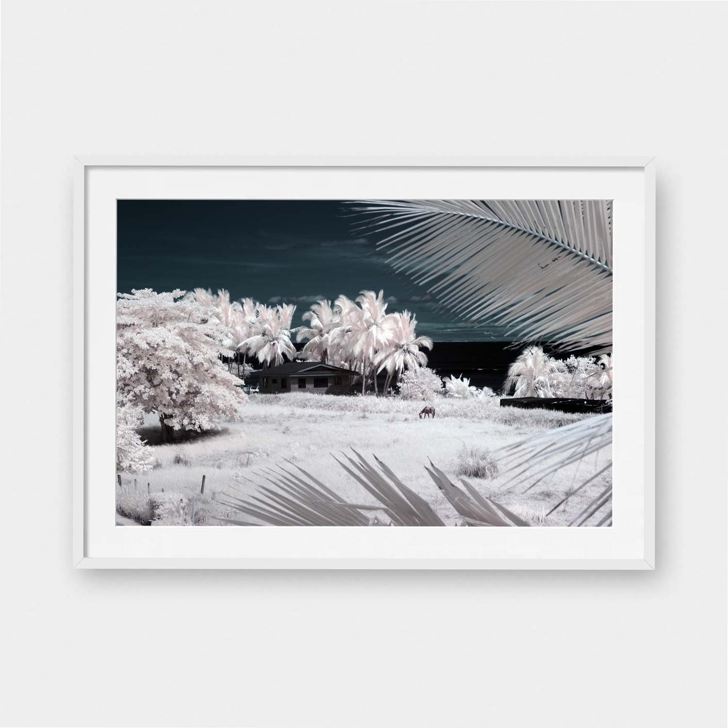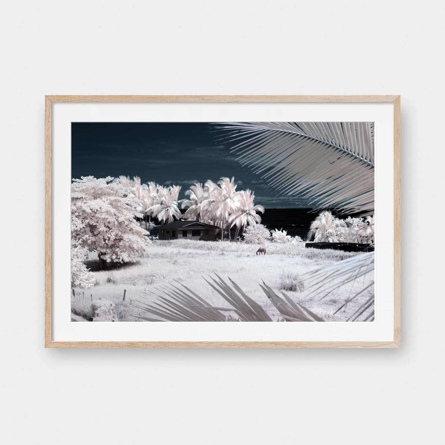 Framed Art Prints feature a contemporary high quality solid wood frame. Pieces come ready to hang with a wire hanger and paper backing. Framed with a white, 2" matte border.