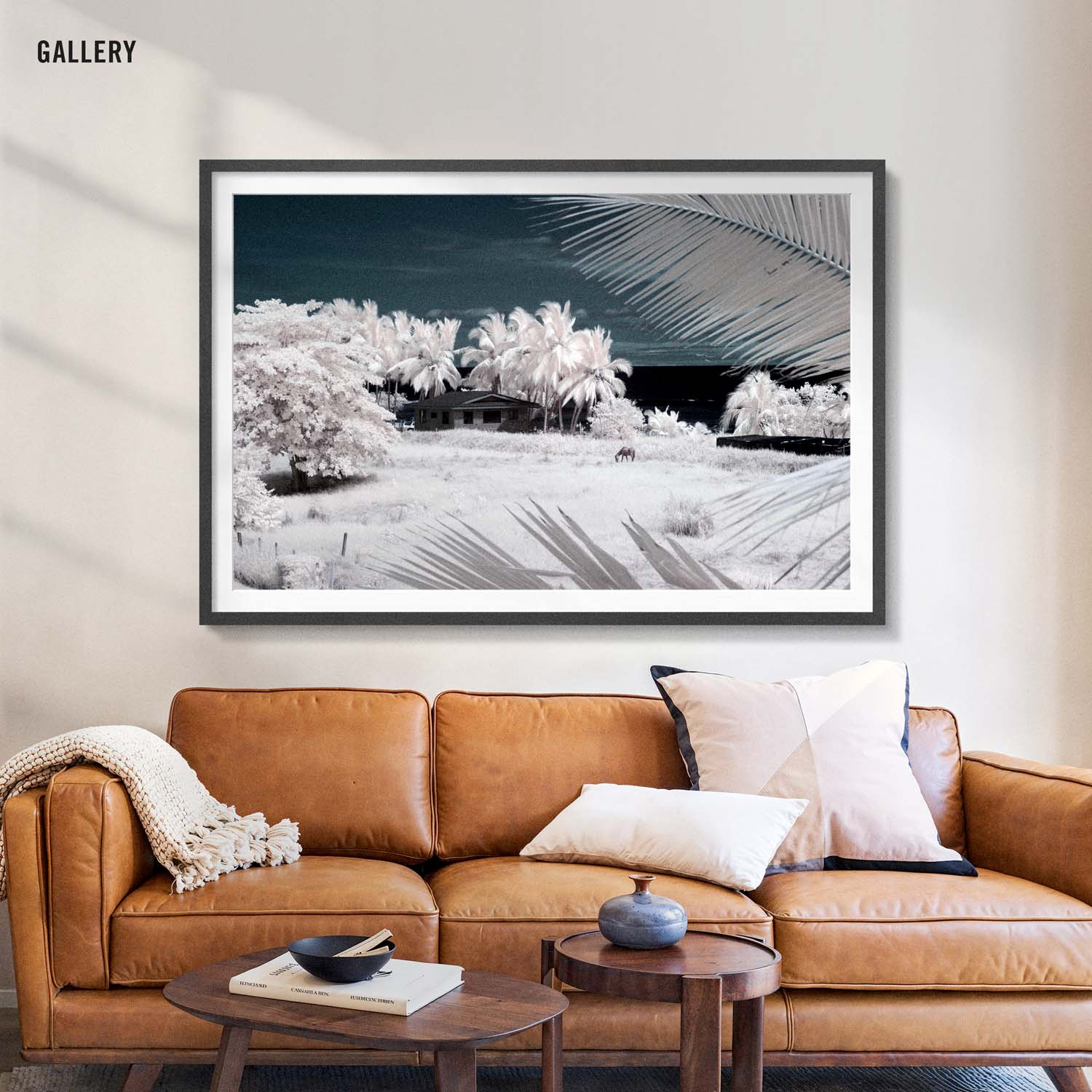 Framed Canvases feature a floating hardwood frame, hand stretched and stapled, with a scratch-resistant UV coating.