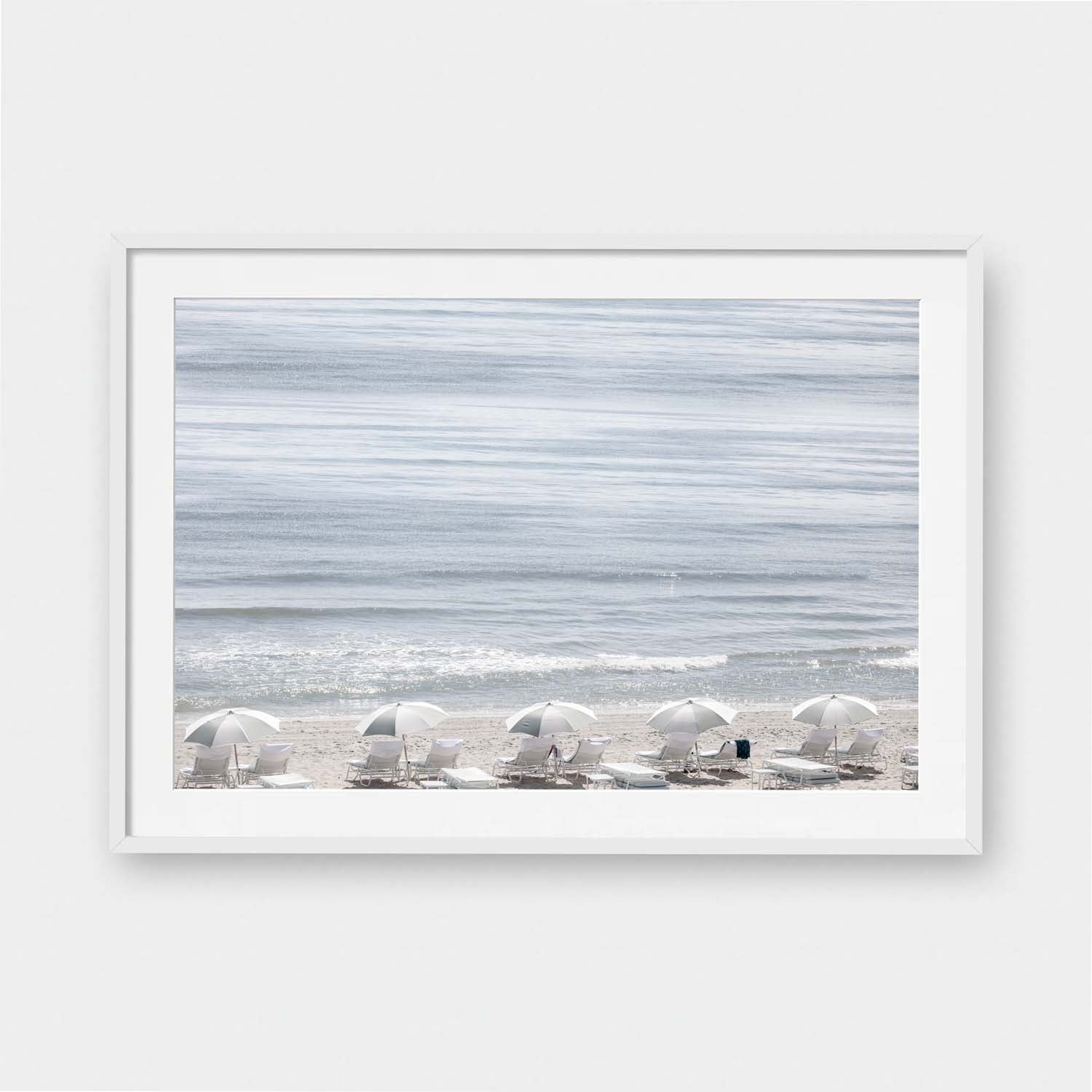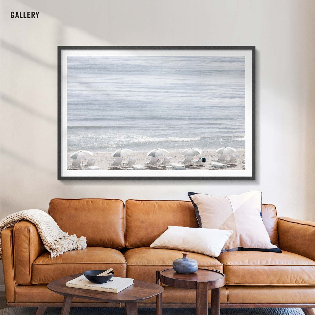 Framed Art Prints feature a contemporary high quality solid wood frame. Pieces come ready to hang with a wire hanger and paper backing. Framed with a white, 2" matte border.