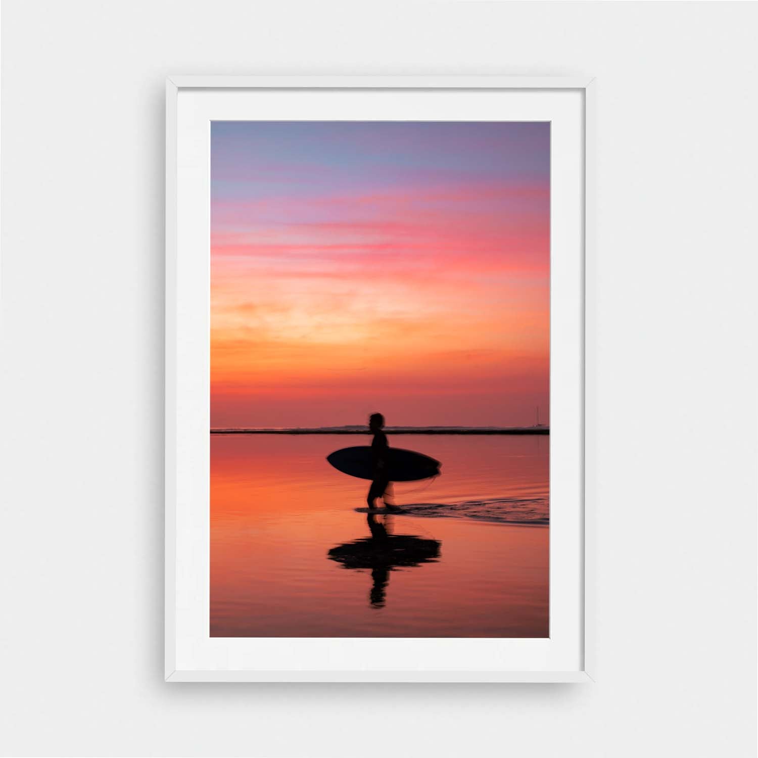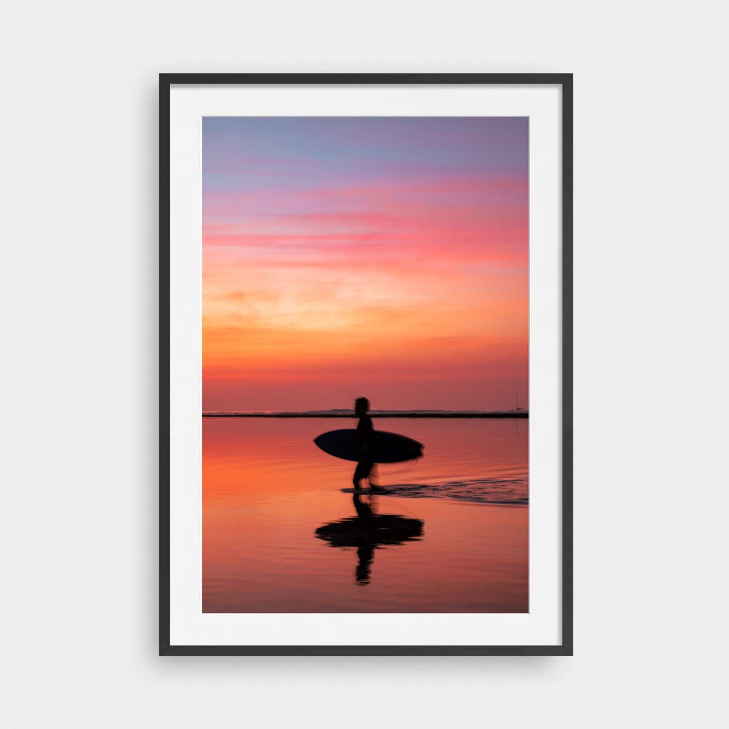 Framed Art Prints feature a contemporary high quality solid wood frame. Pieces come ready to hang with a wire hanger and paper backing. Framed with a white, 2" matte border.
