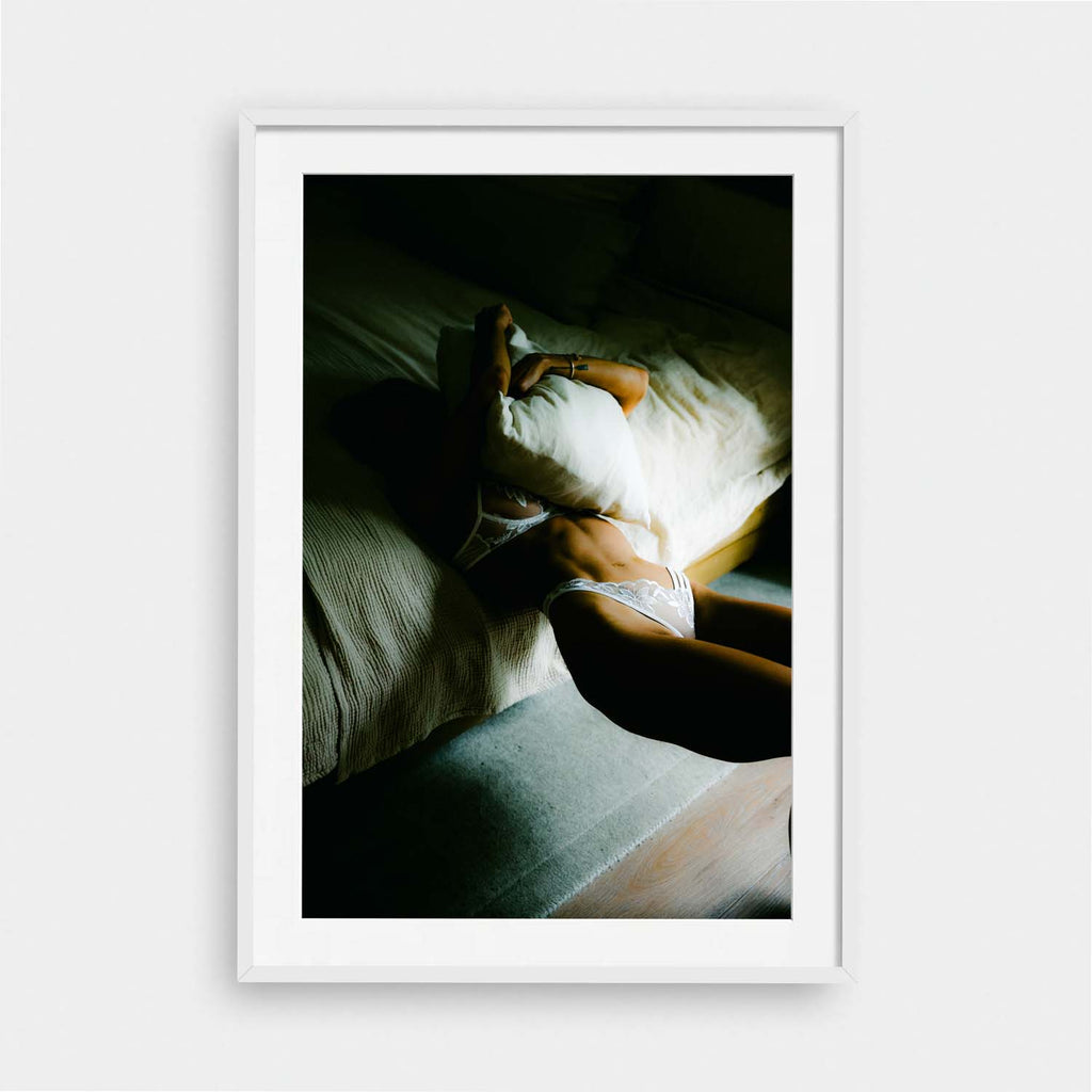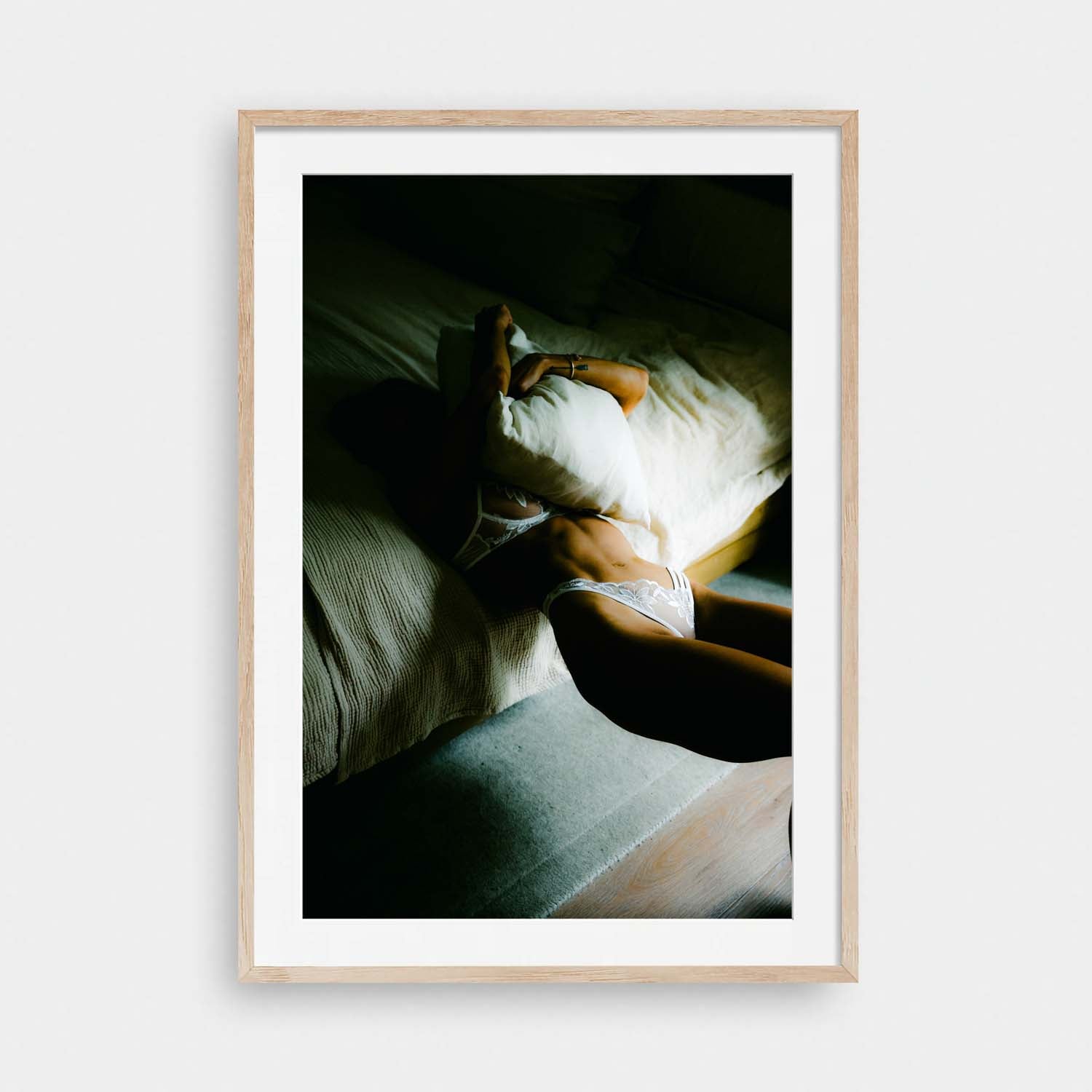 Framed Art Prints feature a contemporary high quality solid wood frame. Pieces come ready to hang with a wire hanger and paper backing. Framed with a white, 2" matte border.