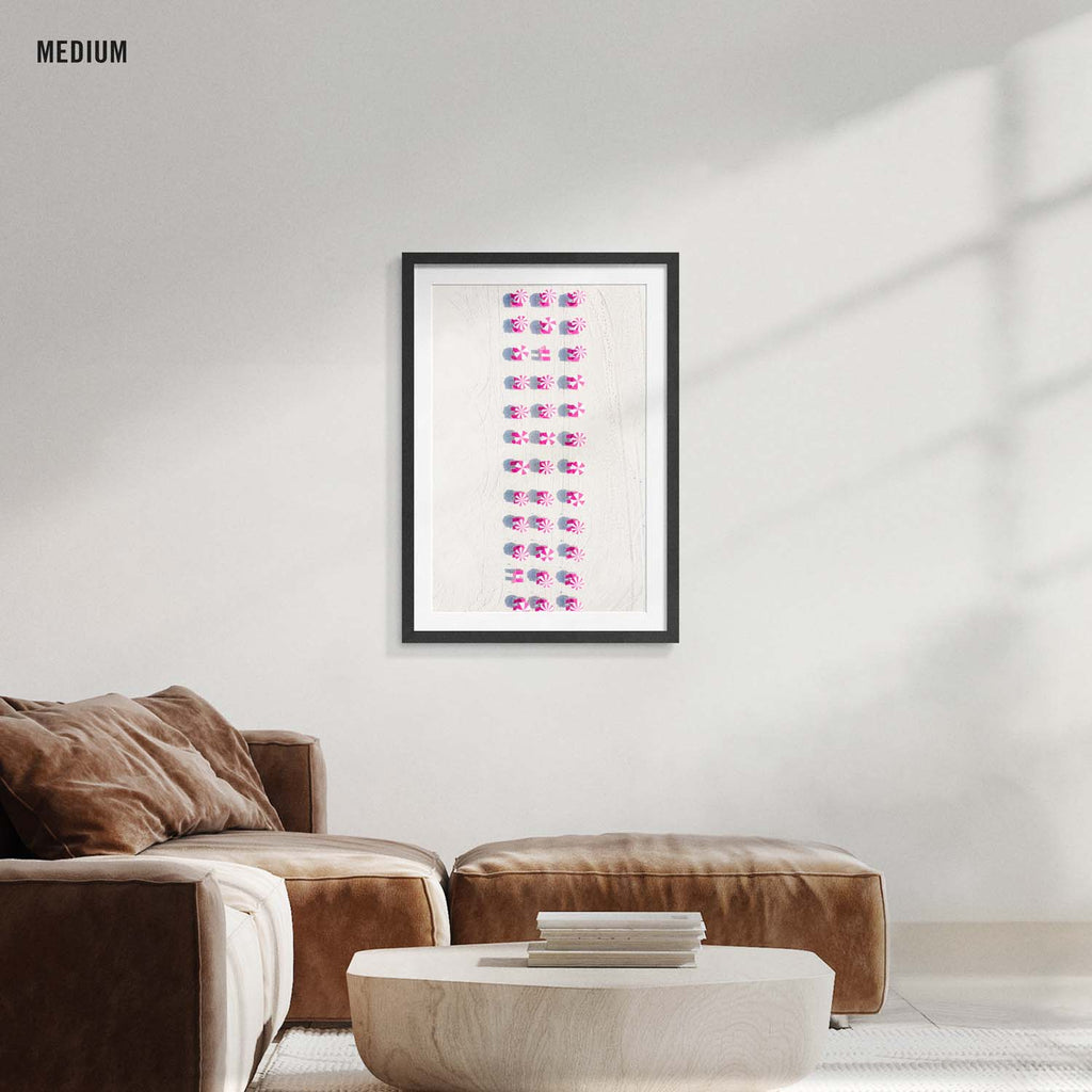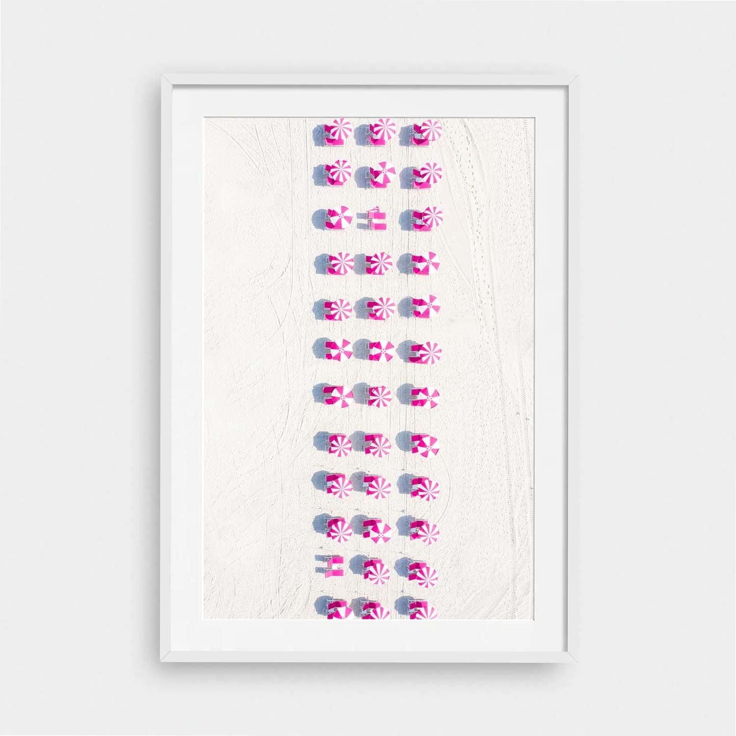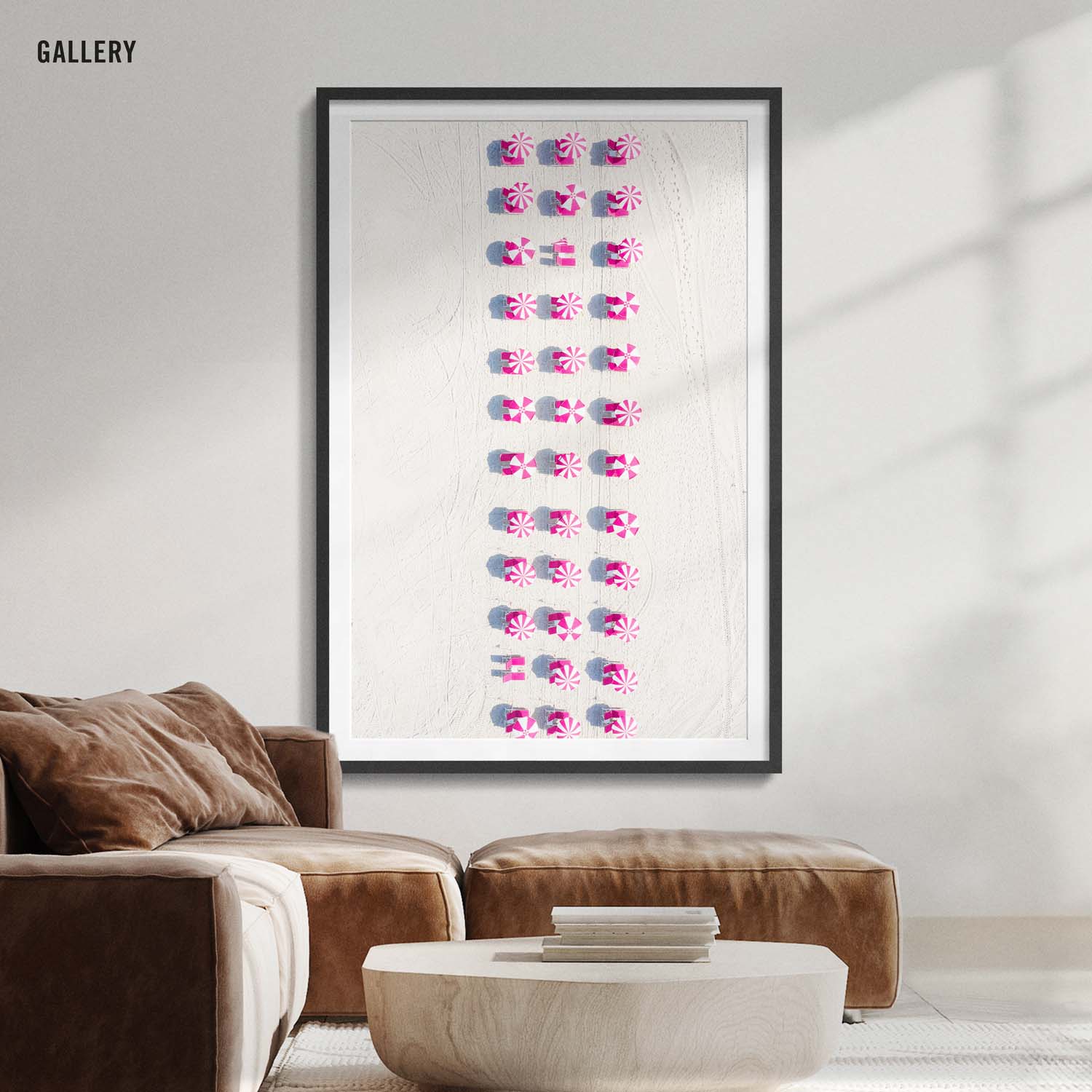 Framed Art Prints feature a contemporary high quality solid wood frame. Pieces come ready to hang with a wire hanger and paper backing. Framed with a white, 2" matte border.