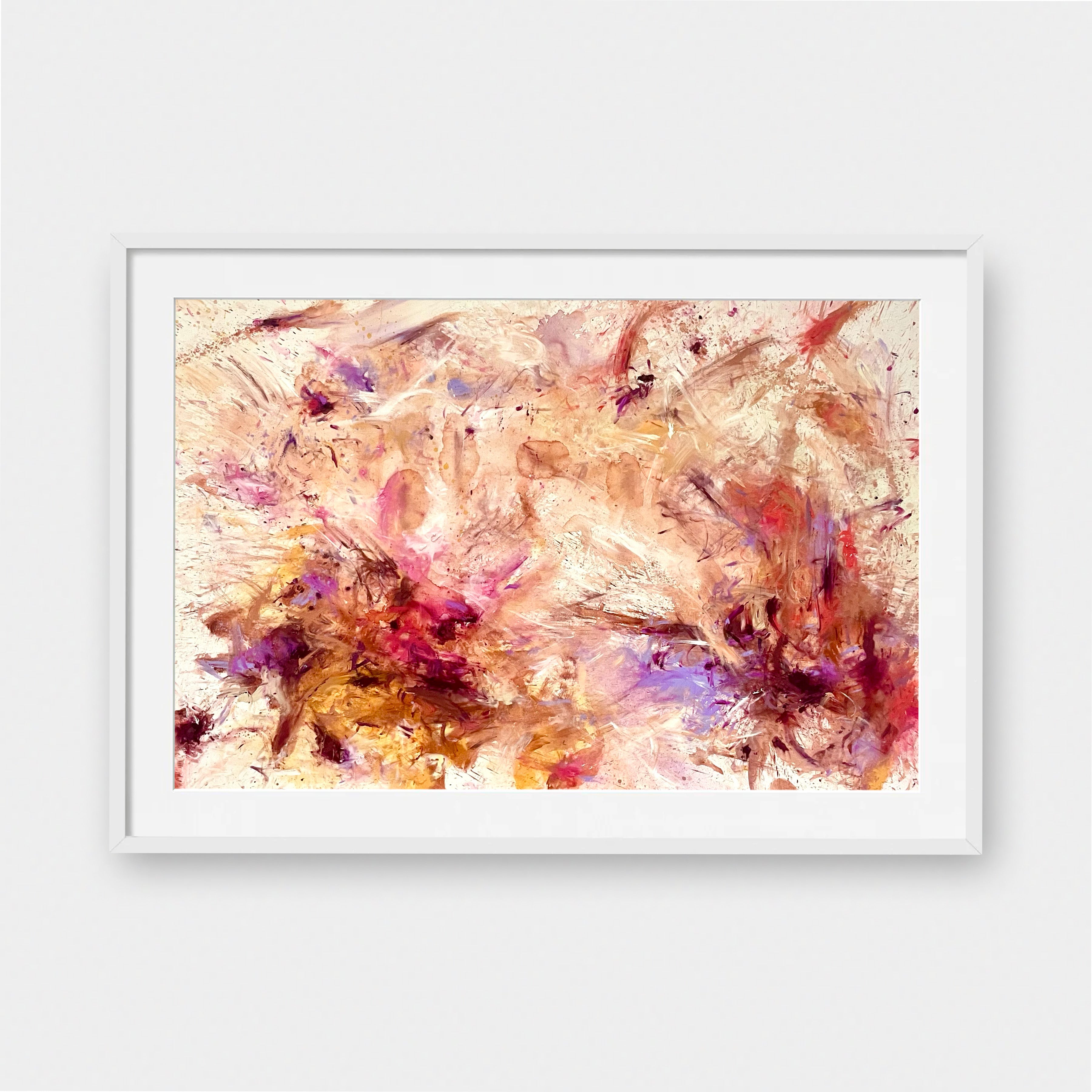 Framed Art Prints feature a contemporary high quality solid wood frame. Pieces come ready to hang with a wire hanger and paper backing. Framed with a white, 2" matte border.