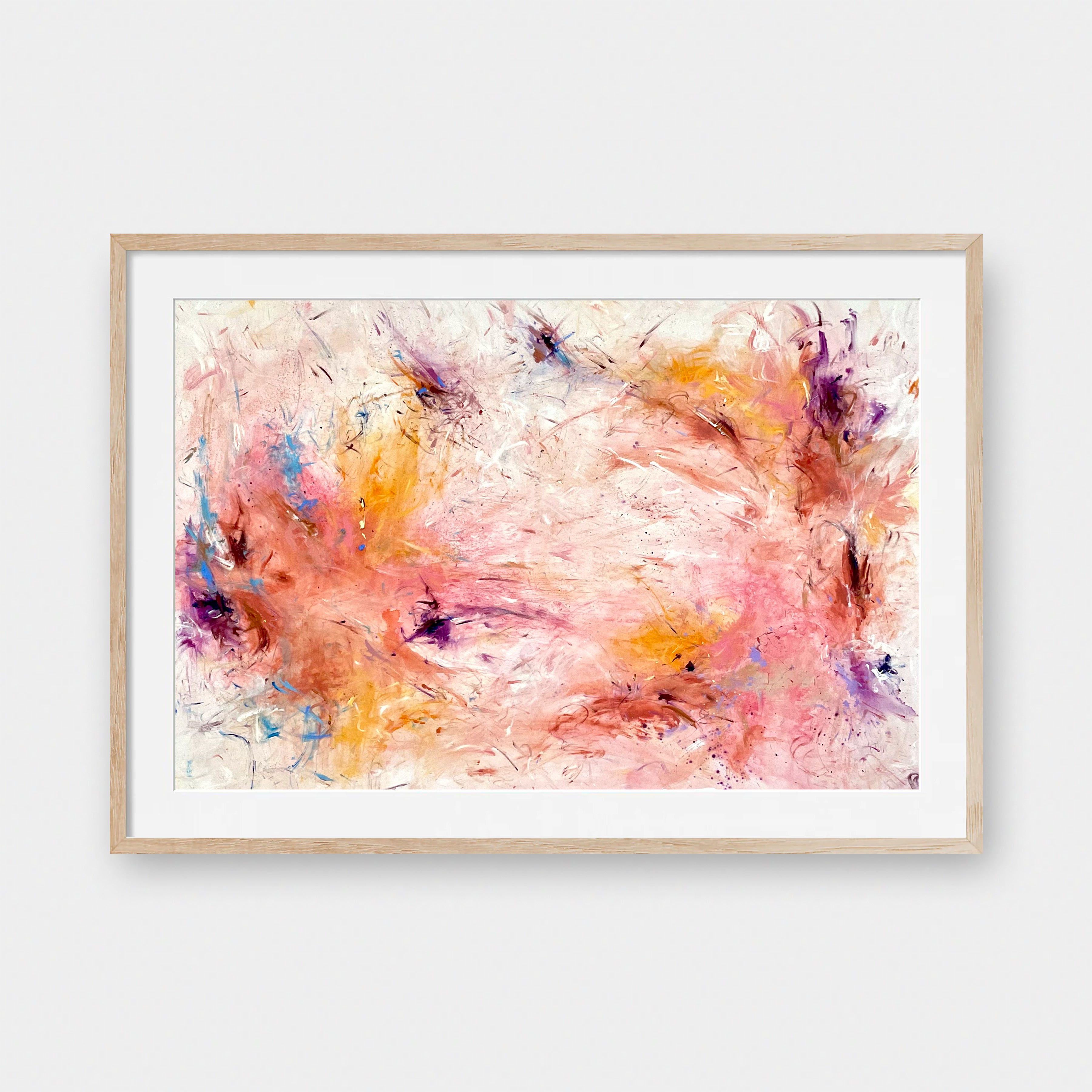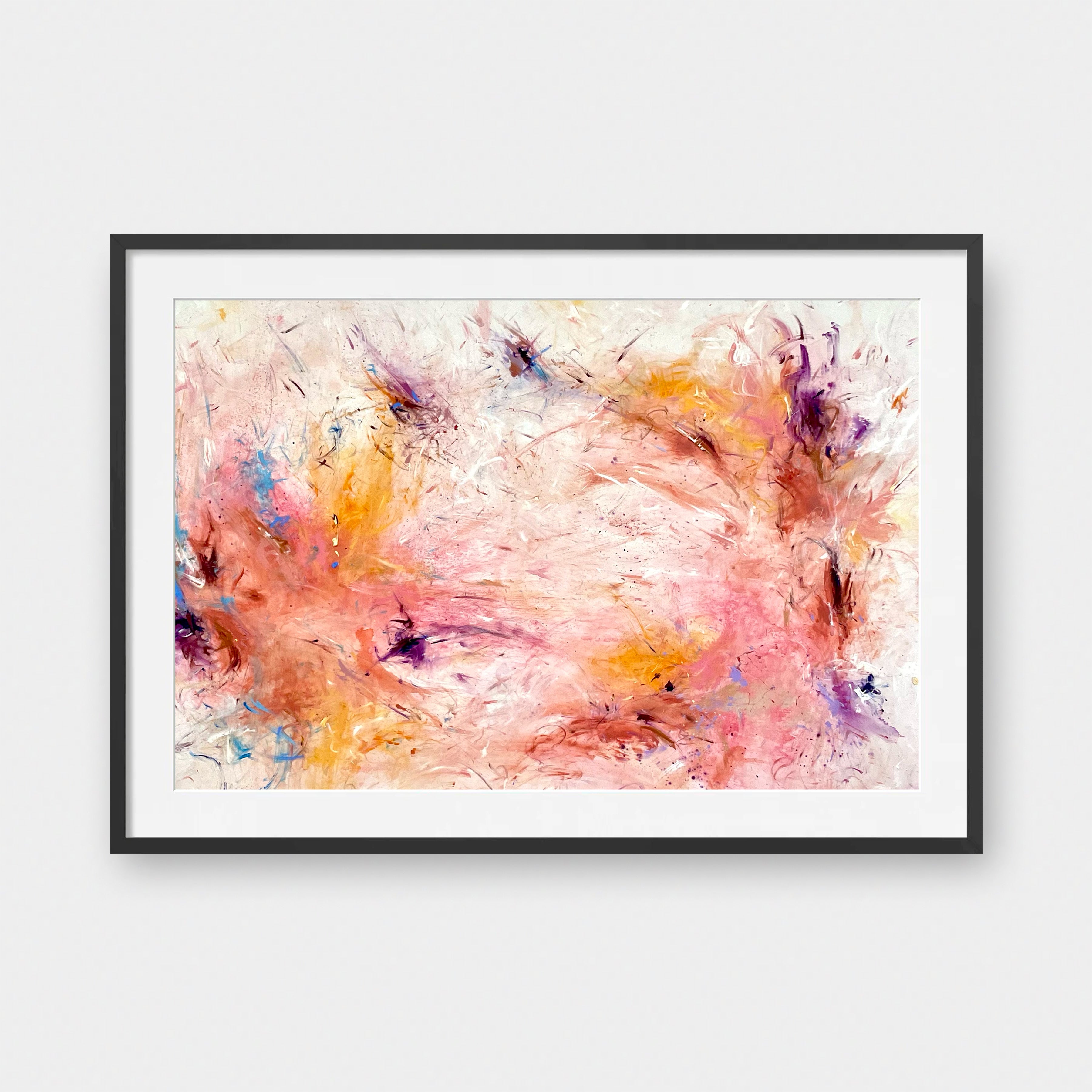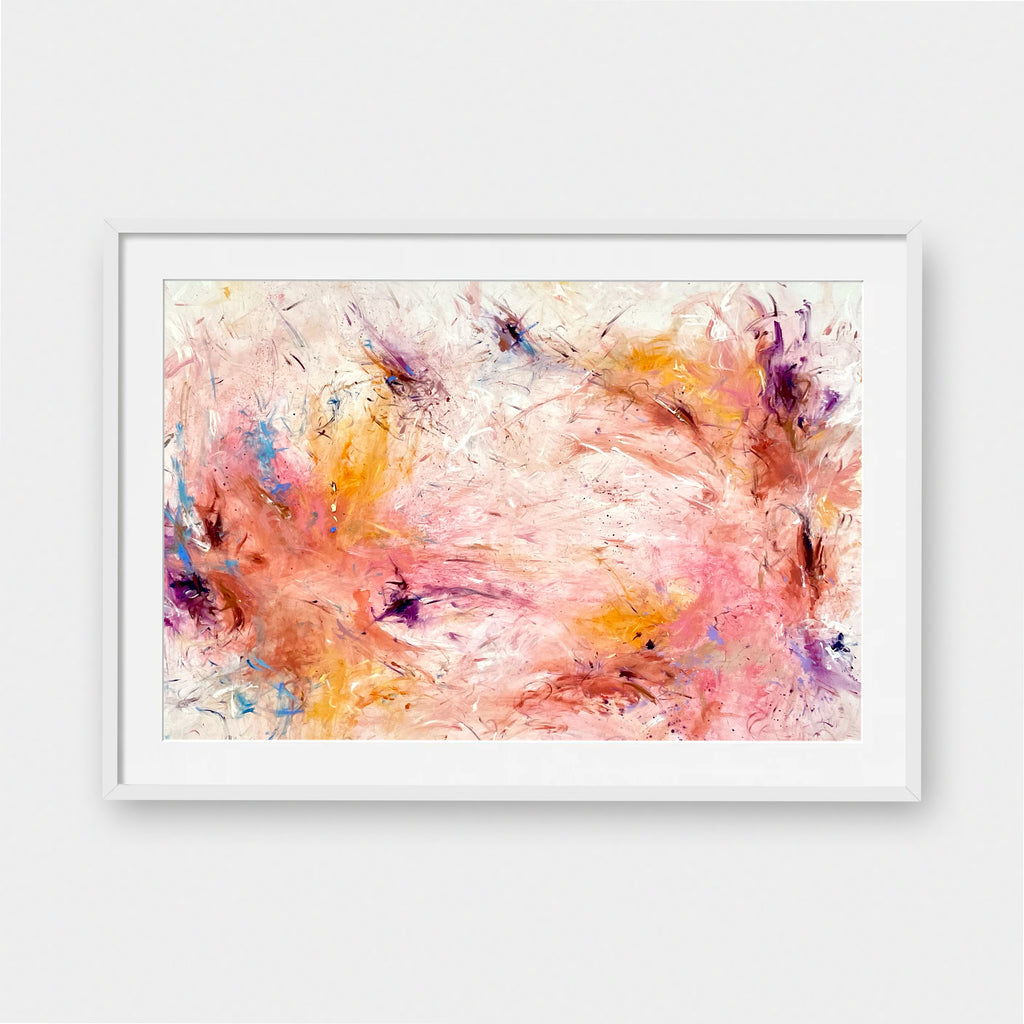 Framed Art Prints feature a contemporary high quality solid wood frame. Pieces come ready to hang with a wire hanger and paper backing. Framed with a white, 2" matte border.