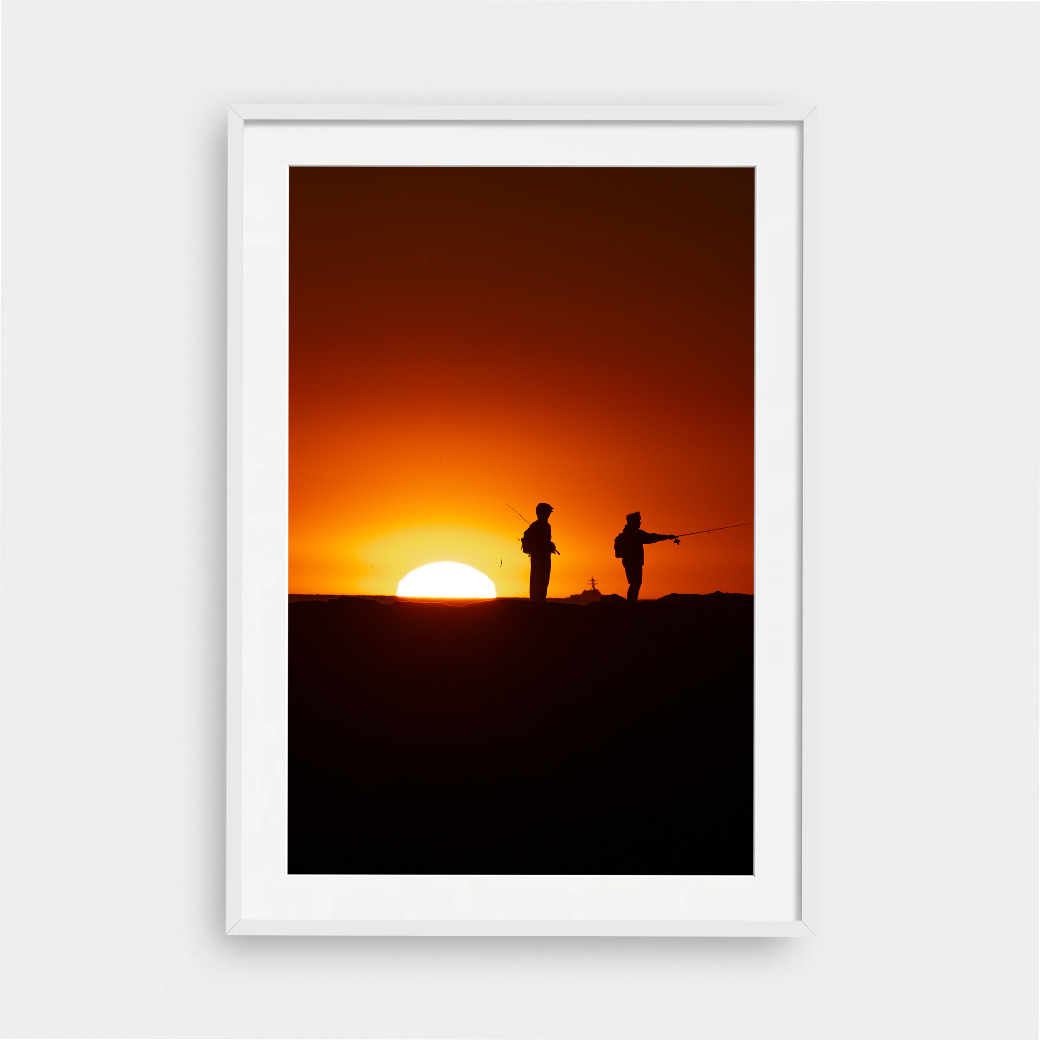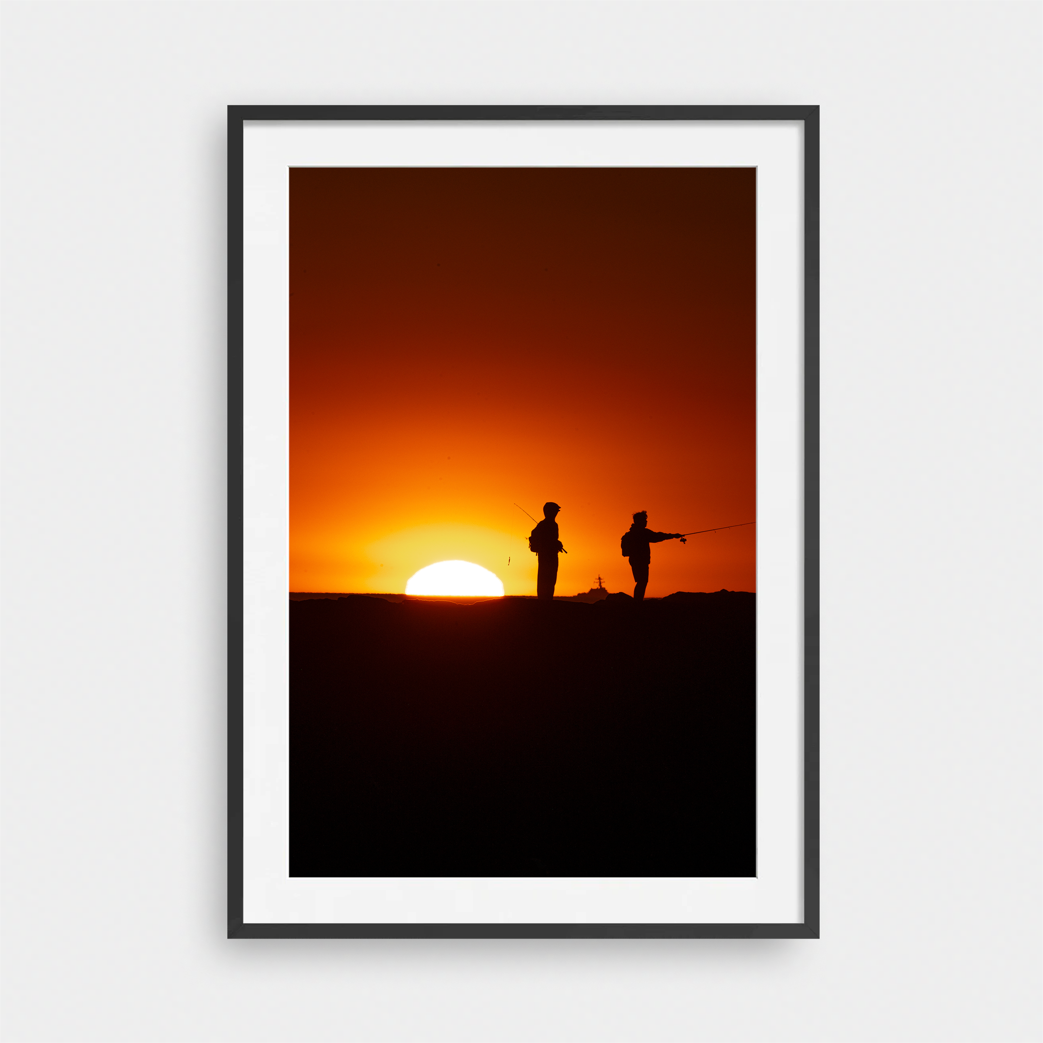Framed Art Prints feature a contemporary high quality solid wood frame. Pieces come ready to hang with a wire hanger and paper backing. Framed with a white, 2" matte border.