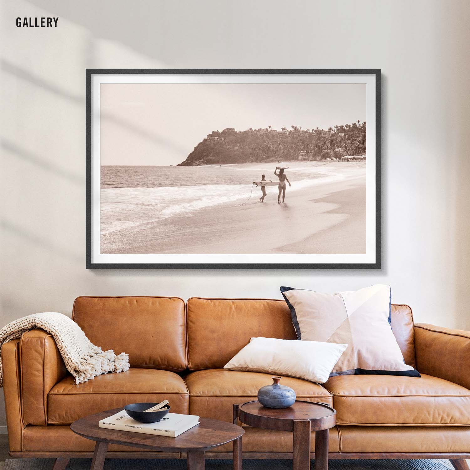 Framed Canvases feature a floating hardwood frame, hand stretched and stapled, with a scratch-resistant UV coating.