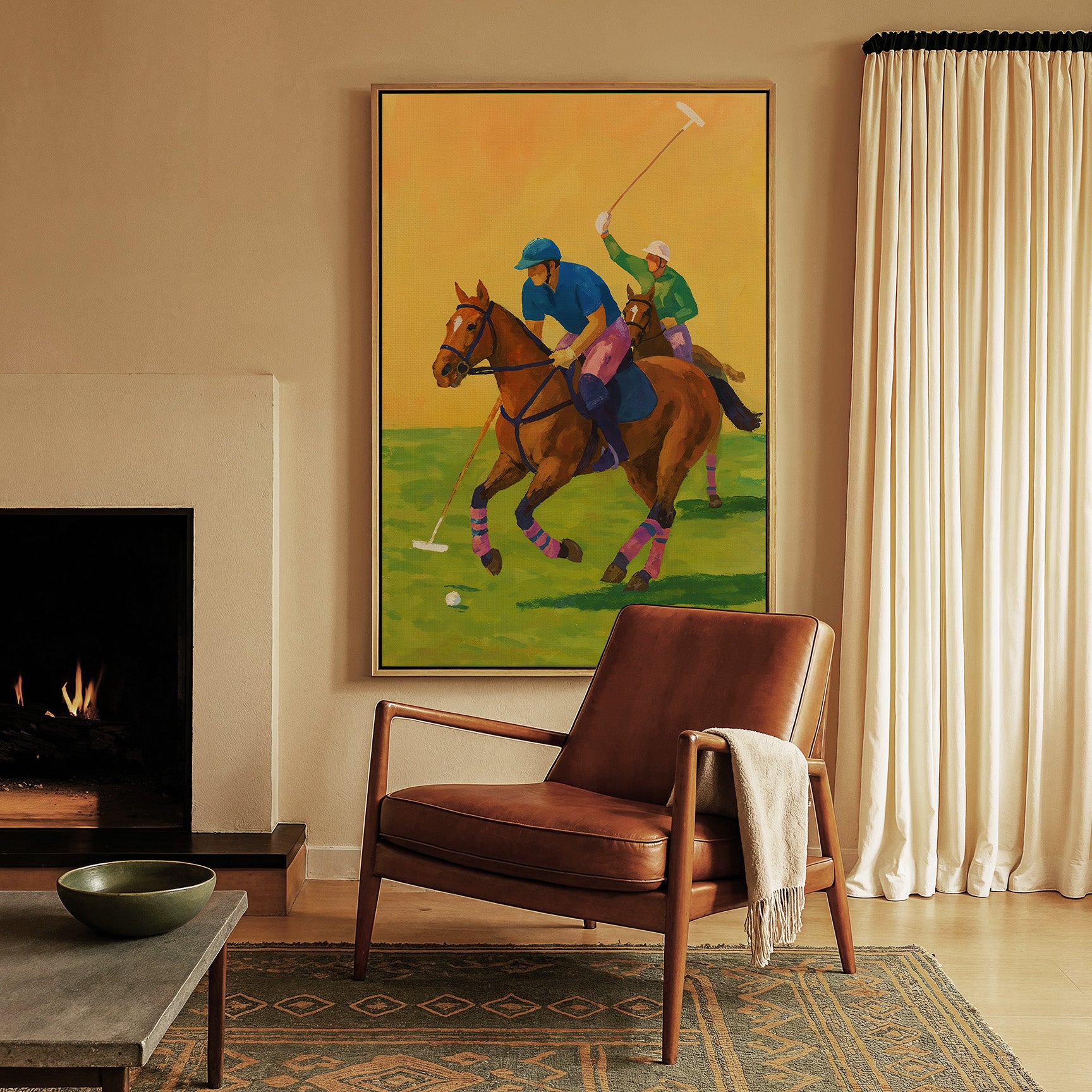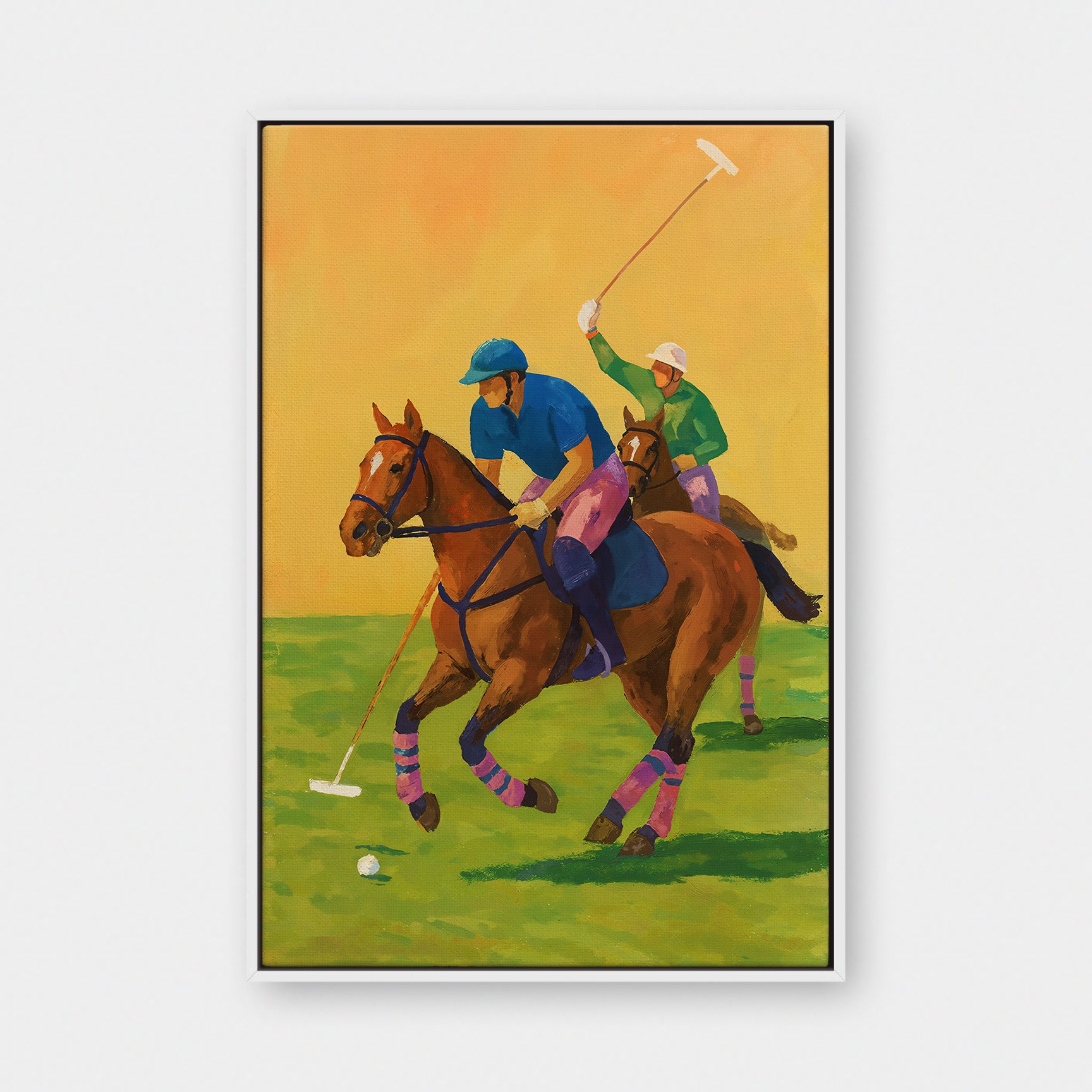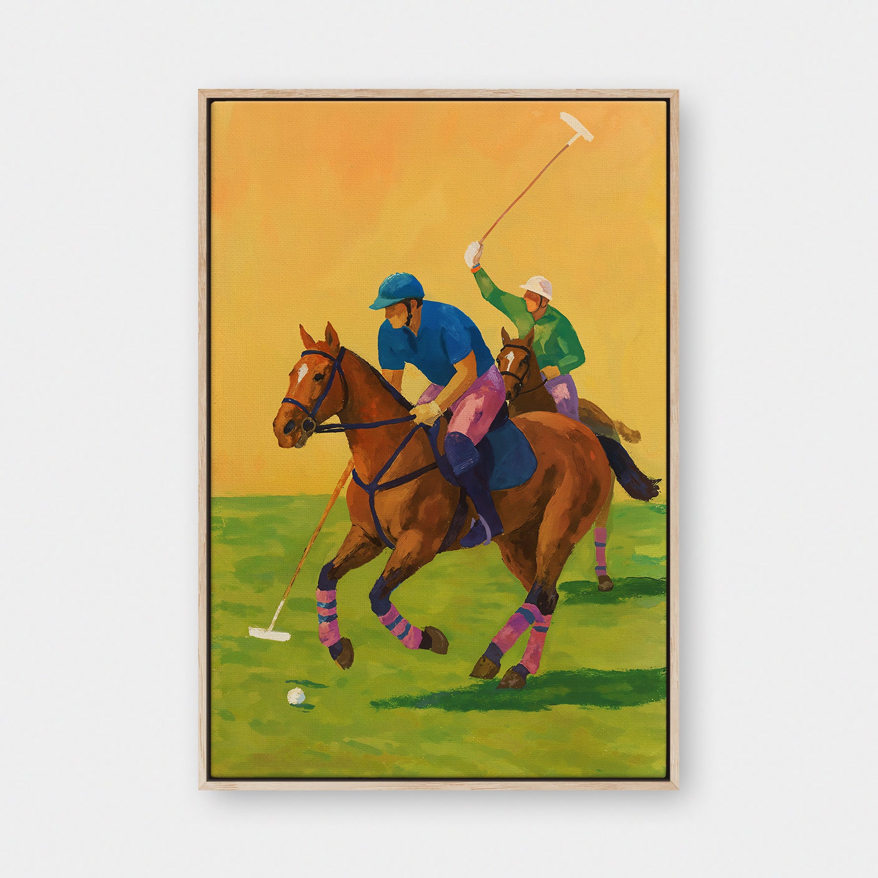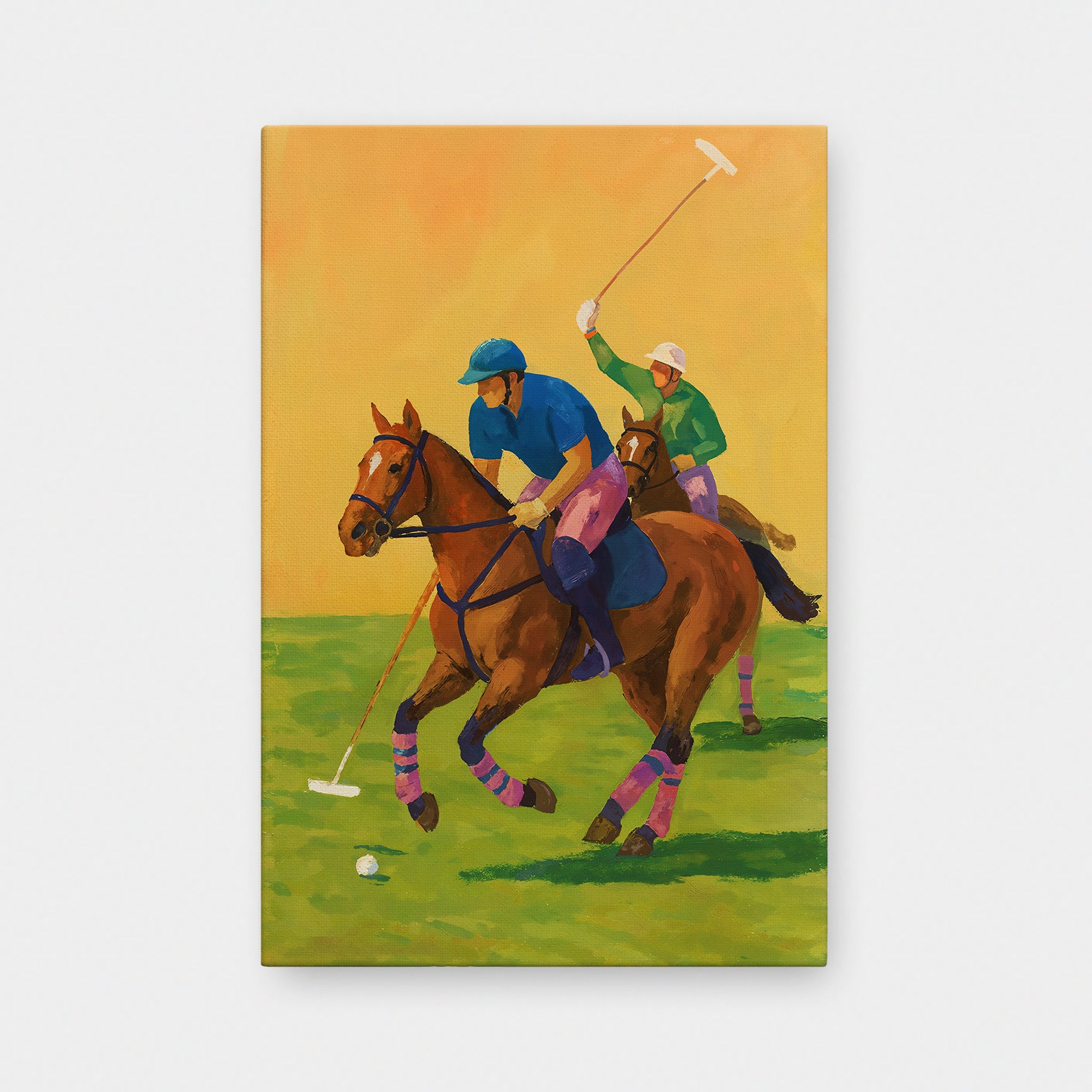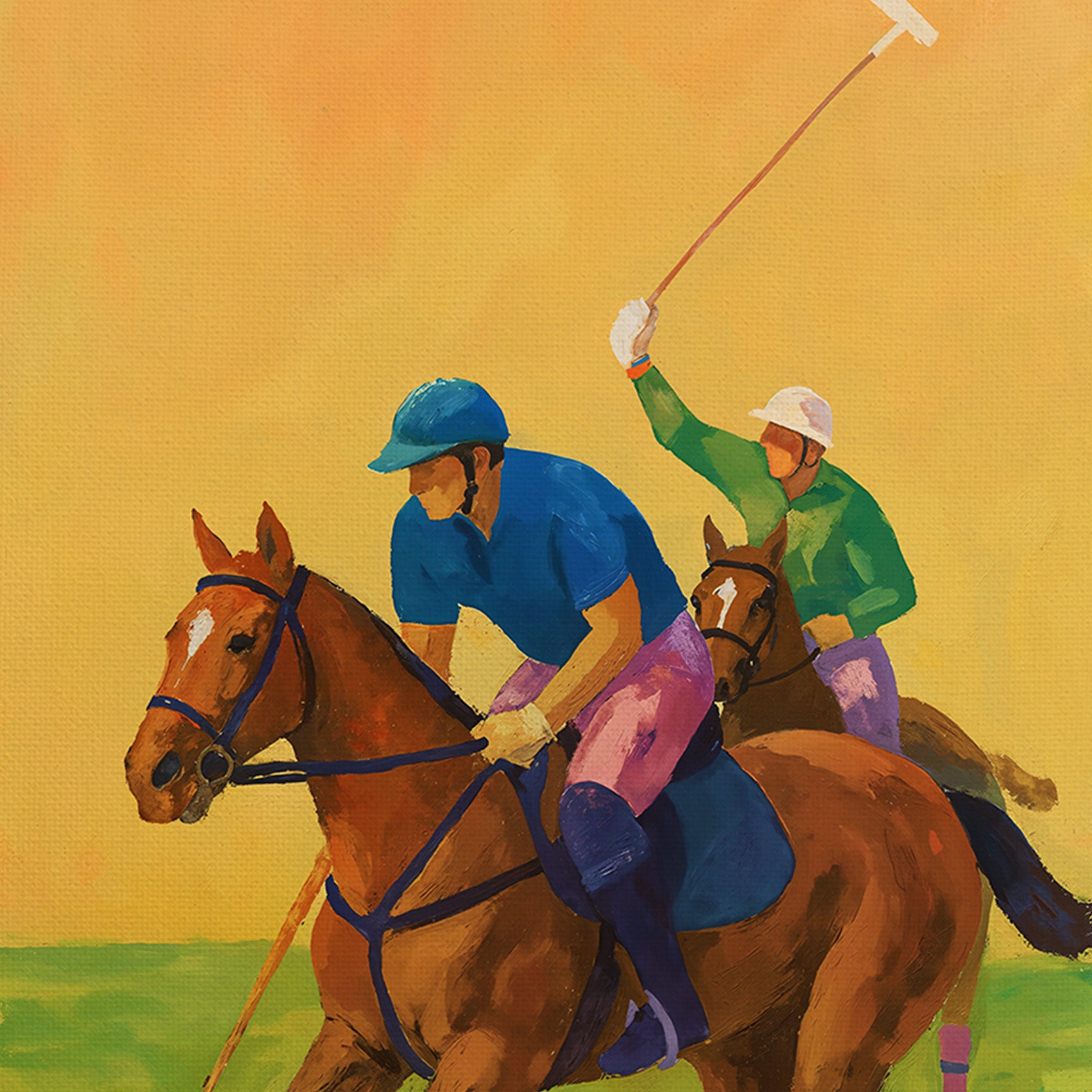 The Field captures the energy and elegance of motion at full stride. Two riders move in sync with their horses, mallets raised and eyes locked forward, suspended in the split second between control and chaos. The scene feels alive—fast, physical, and deeply rooted in tradition.