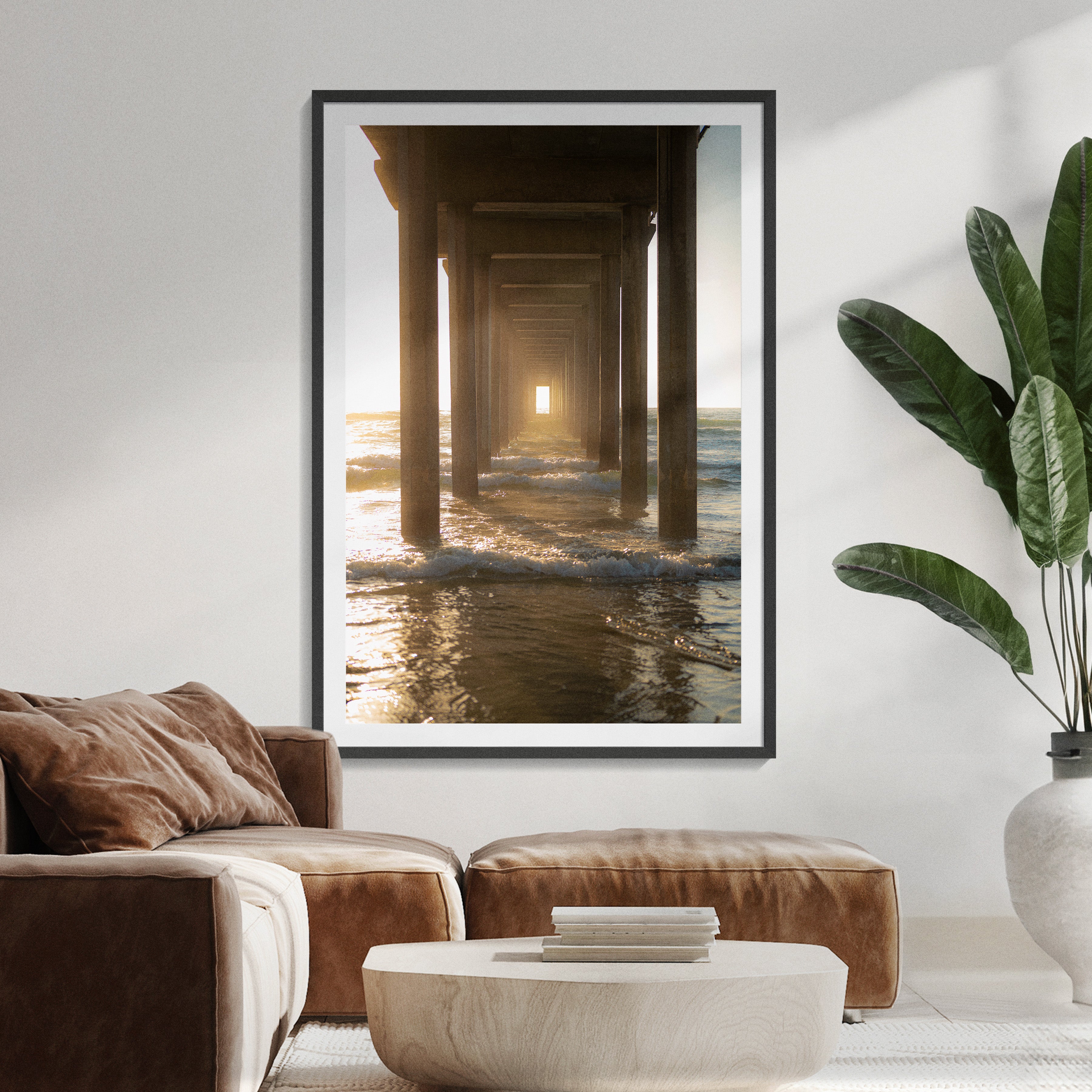Designed to bring depth, balance, and warmth into a space, Through the Pier feels contemplative and timeless, offering a moment of stillness shaped by light, structure, and sea.