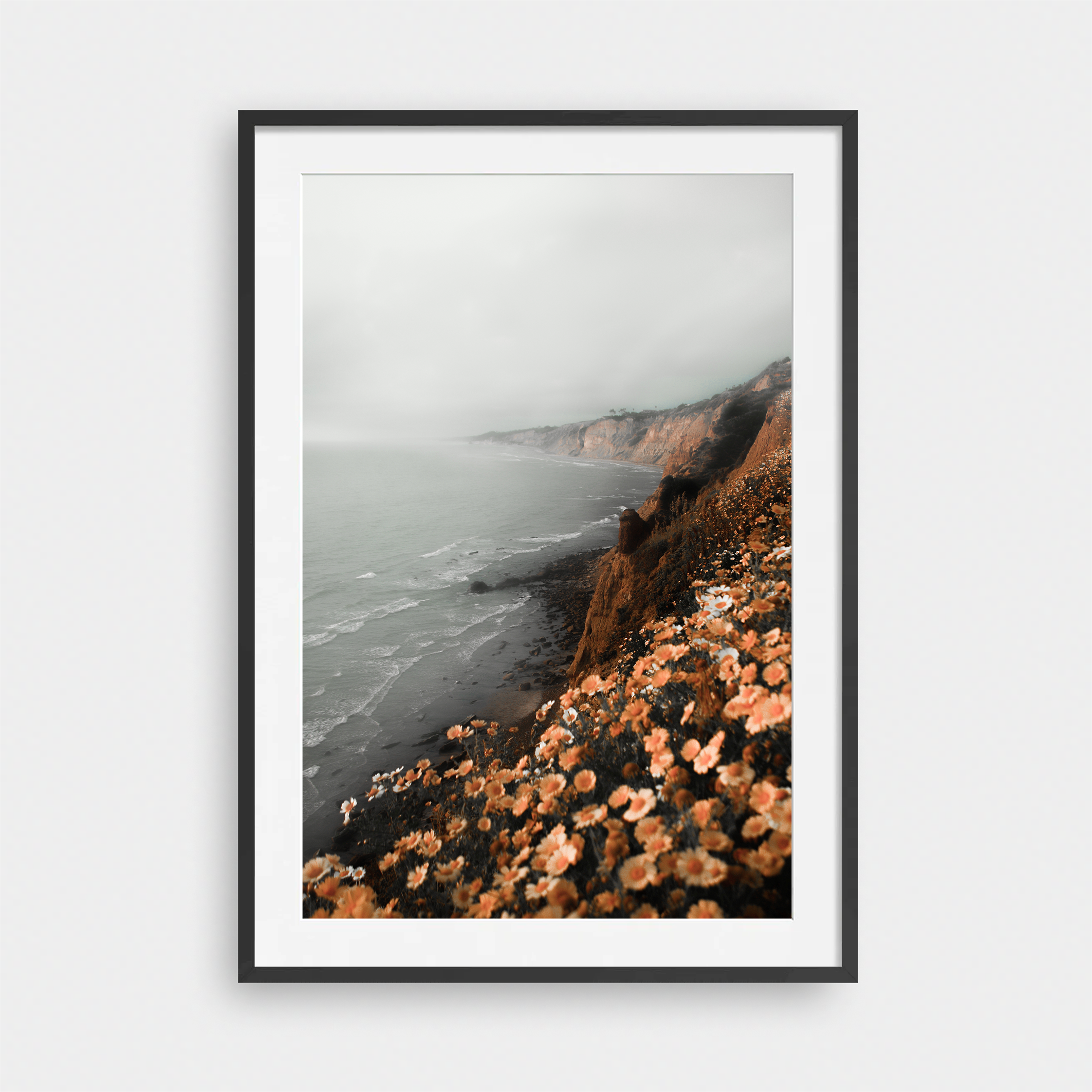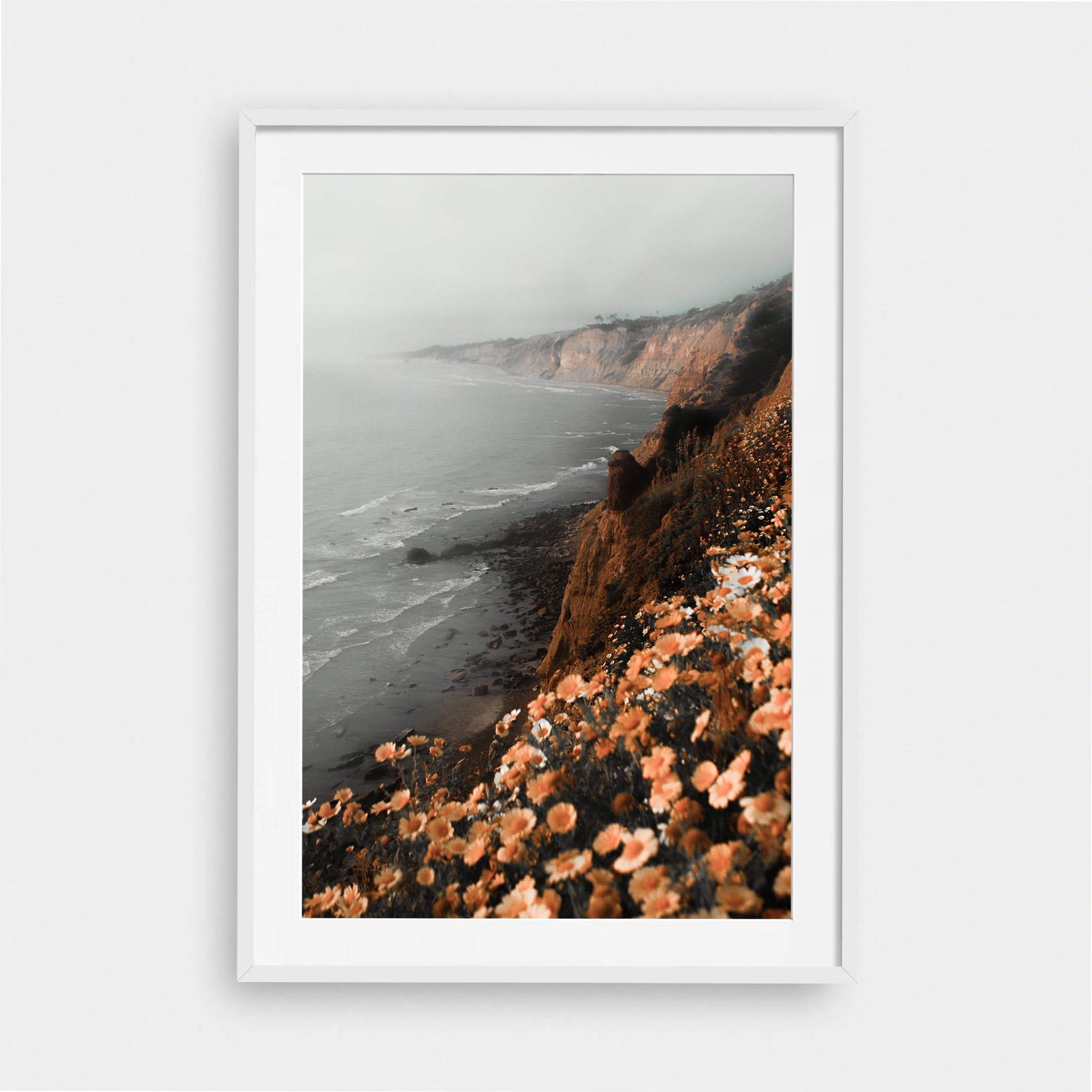 Framed Art Prints feature a contemporary high quality solid wood frame. Pieces come ready to hang with a wire hanger and paper backing. Framed with a white, 2" matte border.