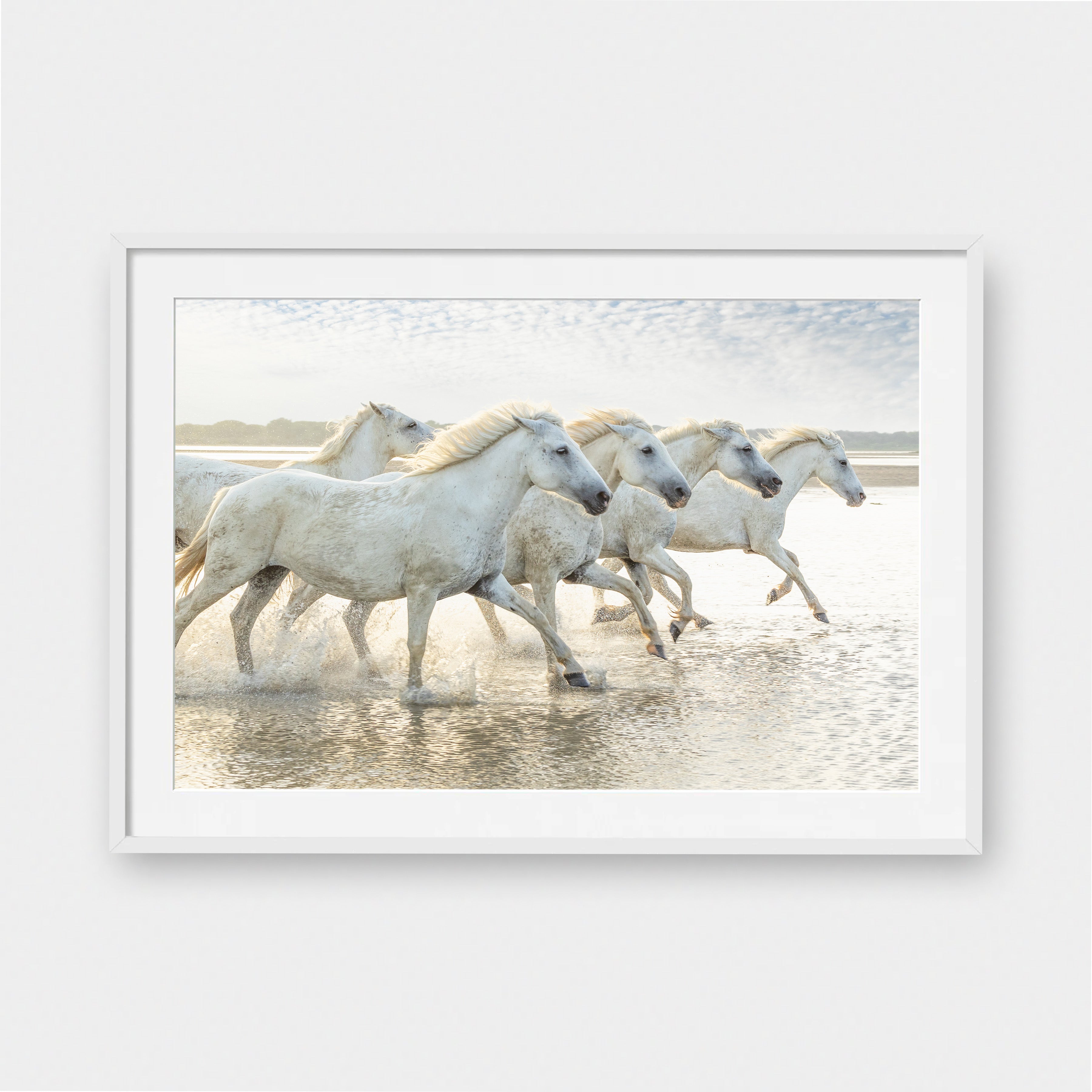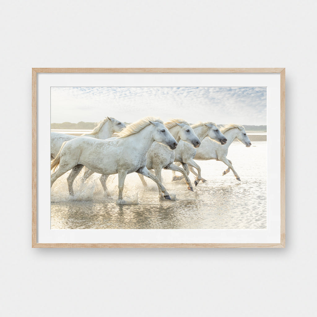 Framed Art Prints feature a contemporary high quality solid wood frame. Pieces come ready to hang with a wire hanger and paper backing. Framed with a white, 2" matte border.