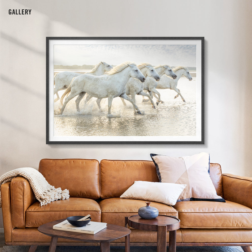 Framed Canvases feature a floating hardwood frame, hand stretched and stapled, with a scratch-resistant UV coating.